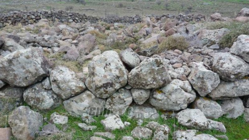 Μετά από αυτές, επάνω από το δρόμο, την κορυφή του χαμηλού λοφίσκου καταλαμβάνει ένας «μυστηριώδης» περίβολος που απασχόλησε πολλούς ερευνητές και θεωρείται ο αρχαιότερος της περιοχής. Είναι ορθογώνιος-ωοειδής, 48 x 38 περίπου μέτρων, με μία μνημειακή από ογκολίθους πύλη στη βορεινή, στενή πλευρά, με παχύ τείχος του οποίου η έξω πλευρά είναι δομημένη με αρχέγονη λεσβία δομή.