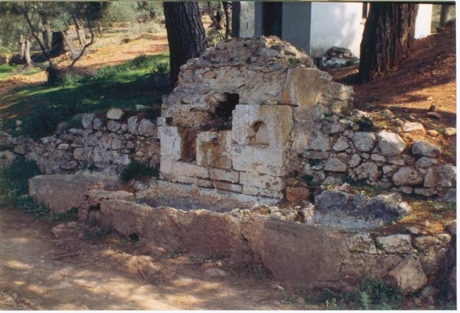 Στον δρόμο προς την Μόρια, από την Λάρσο, μετά το ΚΤΕΟ, ανοίγεται μια κοιλάδα με ελαιώνα, η οποία αφορίζεται από το βουνό της Λάρσου, προς δυτικά και τα ογκώδη ασβεστολιθικά υψώματα, προς τα ανατολικά. Στα βόρεια καταλήγει στην χαράδρα της Καμήλας, την οποία τρώει σε μεγάλη έκταση, το Λατομείο Ασβεστολίθου της Γαλλικής Lafarge, που διαθέτει, όπως είδαμε και Εργοστάσιο Σκυροδέματος, δίπλα στον Ευεργέτουλα. Υψηλότερα υπάρχει η σημαντική εκκλησία της Αγίας Τριάδας, την οποία θα δούμε μετά. Ο δρόμος που ανηφόριζε από εδώ έφθανε μέχρι τον ναό και μετά συνέχιζε στα Ανατολικά Παράλια. Τώρα αυτός ο δρόμος, έχει ασφαλτοστρωθεί από την εταιρεία. Πεντακόσια περίπου μέτρα από τον αμαξιτό, συναντάμε δεξιά ένα Εκκλησάκι του Αγίου Νεκτάριου του 1983 (39ο 13.0705-26ο 46.9323). (Το 1987 μπροστά σ’ αυτό, υπήρχε μια ερειπωμένη Οθωμανική Κρήνη, με λαξευμένους λιθόπλινθους, δύο γούρνες και θυρίδα με οξύληκτο τόξο, η οποία είχε νερό. Λίγο πιο επάνω αριστερά, υπήρχαν δύο κτίσματα (39ο13.0739-26ο46.8526) και σαν γωνιόπετρα στο ένα, χωρίς στέγη, βρισκόταν η Μαρμάρινη Πλάκα με την Επιγραφή της Κρήνης. Τώρα έχει κτιστεί ένα σπίτι επάνω από το εκκλησάκι, η παλιά κρήνη έχει αντικατασταθεί από μια νέα ανιστόρητη κιτς κατασκευή και το παλιό σπίτι έχει ανακαινιστεί, με την επιγραφή στο ίδιο σημείο. Εδώ υπήρχε μεγάλο, Τούρκικο Τσιφλίκι, με το κονάκι και την Κρήνη, στον δρόμο προς της χαράδρα. Η επιγραφή αναφέρει: «Δωρήτρια είναι η Αισέ Ντουντού σύζυγος του Αμπντουλλάχ Εφέντι έτος 1226 (1811-1812) (Δημ. Λούπης).