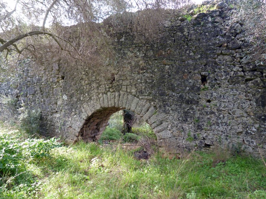 Η περιοχή ονομάζεται «Καμαρούδια». Γιατί στην ρεματιά, που έρχεται σαν ρέμα, γύρω από την ανατολική πλευρά του βουνού, 140 μ. δυτικά από το εκκλησάκι, ακόμα ένα τμήμα του Ρωμαϊκού υδραγωγείου, το οποίο γεφύρωνε την ρεματιά (39ο12.9608-26ο46.8687). Διατηρούνται 40 μέτρα του κτίσματος, από αλάξευτη πέτρα και κουρασάνι, χοντρότοιχο, με τις στοές της χαμένης ξυλοδεσιάς. Φέρει μόνο μια καμάρα, με λαξευτούς θολίτες, χαμηλή, επάνω από το ρέμα στο ανατολικό του τμήμα, το οποίο στρέφεται ελαφρώς προς τα ΝΑ. Ενώνει το πέτρινο βουνό της Λάρσου με το βραχώδες ανατολικό ρείθρο της ρεματιάς. Ο αγωγός, υπόγειος συνέχιζε προς αυτήν την κατεύθυνση και βρέθηκε σε δύο σημεία, μέσα στον ελαιώνα. Στην στροφή του αμαξιτού, αριστερά, ανασκάφηκε η συνέχεια του υπόγειου αγωγού, σε μήκος 57 περίπου μέτρα (39ο 12.8222-26ο 47.5945). Φαίνεται η ενιαία κατασκευή του με το ορθογώνιου αυλάκι, επενδυμένο με υδραυλικό ασβεστοκονίαμα και ο κτιστός με σχιστόλιθους θόλος (Επισκέψιμο). Έχει κατεύθυνση προς ΝΔ-ΒΑ και θα κατέληγε στον «Φανό», το φρεάτιο επίσκεψης και εξαερισμού. Από συγγραφείς αναφέρονται και άλλοι αγωγοί εξαερισμού στο ενδιάμεσο διάστημα, αλλά δεν έχει εξακριβωθεί η ύπαρξη τους.
