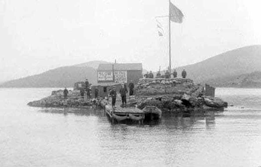 Την νησίδα των Πύργων, το 1918, οι Γάλλοι, που ναυλοχούσαν στα Λουτρά, την οχύρωσαν, στήνοντας πυροβόλο στο κτίσμα του ναού, κατασκευάζοντας μικρή ξύλινη καλύβα για το προσωπικό και πόντισαν μεταλλικό πλέγμα στην βαθειά, βορινή δίοδο για την παρεμπόδιση εισόδου των Γερμανικών υποβρυχίων.