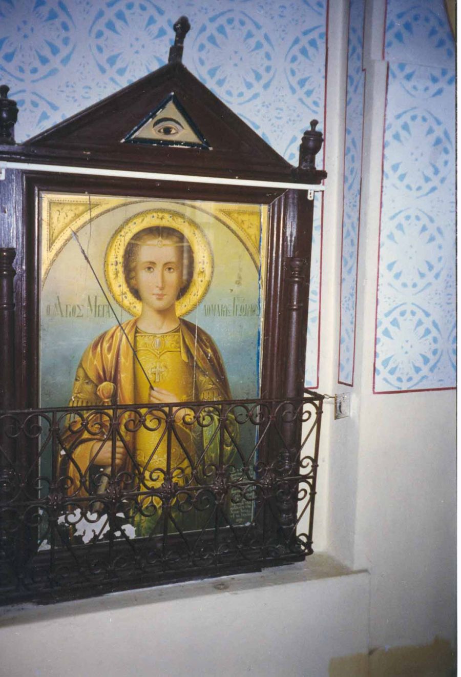 Τούτη η εκκλησιά χτίστηκε το 1938. Από τον παλαιότερο ναό δεν σώζεται τίποτα. Μόνο οι παλιές εικόνες. Σύμφωνα με πληροφορίες, είχε τις ίδιες διαστάσεις με το σημερινό. Τον ονομάζανε και «πιλαφά», γιατί στη γιορτή του οι μοναχοί σφάζανε μοσχάρι και το μαγειρεύανε με ρύζι. Δίπλα βρίσκεται το νεκροταφείο του Μοναστηριού και του οικισμού. Μετόχι του Αη-Γιώργη, ήταν στο Λωβοχώρι, το κτήμα των λωβών με το ομώνυμο εκκλησάκι. Η περιουσία της Μονής ήταν κοντά 500 μόδια.**Τώρα είναι ένας δροσερός τόπος στην πλαγιά της Αγκαθερής.
