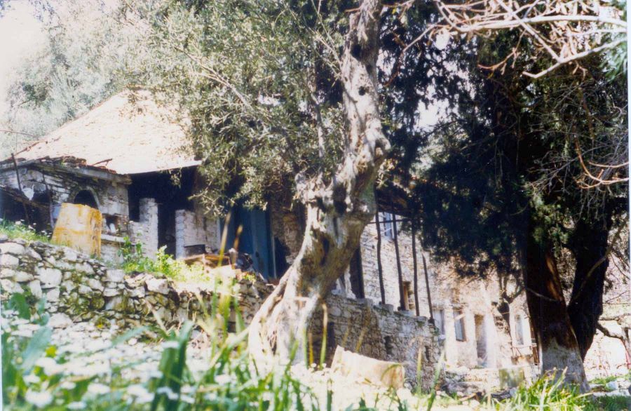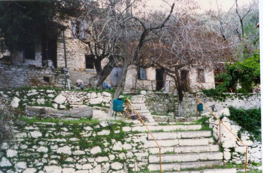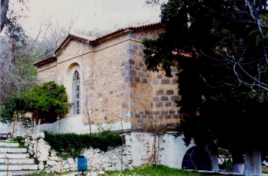 Αναφέρεται το 1894, από τον Αρχοντόπουλο, στην» θέση Καρυές, Μονήδριον των Αγίων Ακινδύνων, μεθ’ενός μοναχού» και γίνεται, μνεία του «αγιάσματος». Το 1909, ο Τάξης πάλι αναφέρει «εν τη τοποθεσία Καρυές, των Αγίων Ακινδύνων εκκλησίδιον μεθ’ικανής περιοχής και τινων κελίων». Αυτά αναφέρονται. Είναι γνωστό, ότι την Κυριακή του Πάσχα, σε μεγάλο πανηγύρι, γινότανε ταυροθυσία, με το κουλμπάνι. Μια σκάλα, ανηφορίζει σε υψηλότερο επίπεδο της νότιας πλευράς, όπου βρίσκονται τα κτήρια των κελιών, το 1997 με ξύλινους στύλους, φούρνο και τα τζάκια της τελετουργίας, τώρα κάπως ανακαινισμένα. Στο μέσον σχεδόν βρίσκεται το ωραίο Καθολικό, λιθόκτιστη, μονόκλιτη εκκλησία, με λαξευμένο ιγκνιβρίτη, με μονολιθικά θυρώματα, υπέροχο ξυλόγλυπτο τέμπλο και δύο μαρμάρινα μανουάλια. Επάνω από το ιερό είναι εντοιχισμένο μέλος κοσμήτη από παλιό ναό. Χτίστηκε στις 15 Ιουλίου, του 1894. Σίγουρα όμως εδώ υπήρχε παλιός ναός και ίσως εγκατάσταση μοναστηριού. Κάτω από το ιερό, υπάρχει μια κρύπτη, που έχει ένα μεγάλο μαρμάρινο επίθημα. Επίσης με ένα υπέροχο δακτυλιοειδές επιστόμιο, από ιγκνιβρίτη, βρίσκεται το πηγαδάκι του «αγιάσματος», το οποίο αποτελεί τμήμα της παλιάς εγκατάστασης. Λίγα μέτρα πιο πέρα, στην αυλή, υπάρχει η υπόγεια, θολωτή δεξαμενή (cisterna), η οποία σίγουρα τροφοδοτεί με νερό το αγίασμα και δέχεται νερό από άγνωστη πηγή. Έπειτα η παράδοση θέλει εδώ μοναστήρι που μαρτυρείται σε τριώδιο του 19ου της εκκλησίας των Μυστεγνών, που αναφέρεται «κτήμα της Ιεράς Μονής των Αγίων Ακινδύνων».