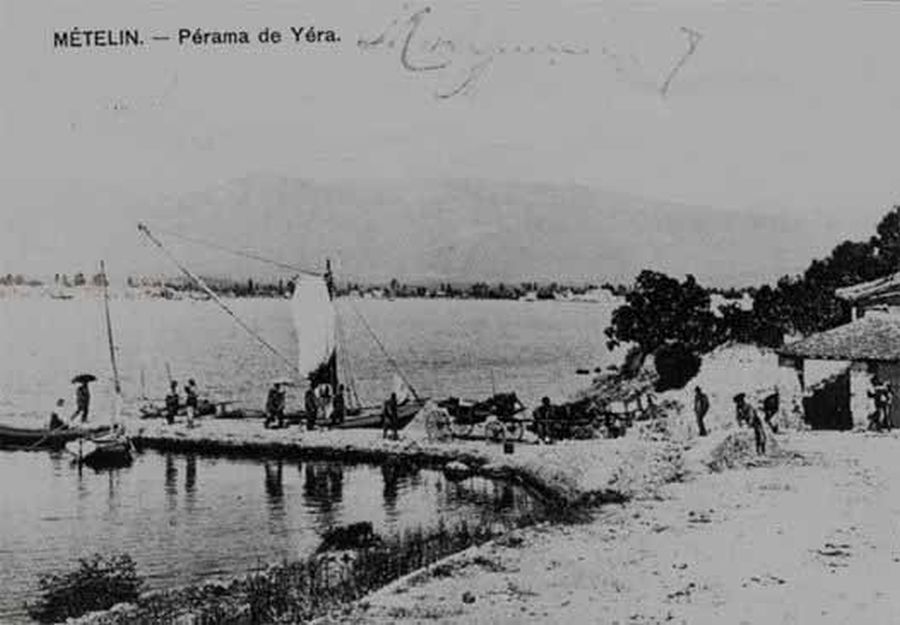 Στην Κουντουριδιά ο Αντώνης Χιώτης ή «Αβέρωφ» ανοίγει το πρώτο του καφενείο , μια «παράγκα», το 1920. Απέναντι το 1925 ανοίγει ακόμα ένα ο πατέρας του «Αλεκάκη». Ίσως στο παλιό Τούρκικο καφενείο. Το 1930 ο Βασίλης Χιώτης (γιος του Αντώνη) θυμάται περίπου 30 βάρκες να περνούν απέναντι. Είχαν κοινοπραξίες οι βαρκάρηδες και οι μαουνιέρηδες. Μέχρι το 1950 οι βάρκες είχαν πανιά! Αν και μου ανέφερε ότι από το 1936 είχε μια βενζινομηχανή(;), ο Παναγιώτης Χλιάρας έβαλε την πρώτη το 1953, που την αγόρασε ο Σουρλάγκας, για να τον πηγαίνει στο Εργοστάσιο. Από το 1945 άρχισαν να τοποθετούν τις ντηζελομηχανές του Σοφία! Το 1945 αγοράζει το απέναντι καφενείο ο Μαρινέλλης και το 1955 την βάρκα του «Αθηνά». Από το 1950 τρεις βάρκες πηγαίνανε και στο Ακοθ, όπου υπήρχε το καφενείο από τον βρακά, παππού του Ασημάκη. Μέχρι το 1960 υπήρχαν ακόμα 40 περίπου βάρκες , και ο Βασίλης αποκτά τον Ποσειδώνα και την Ευαγγελίτσα! Το 1967 αρχίζει το πρόβλημα, με την κατασκευή του δρόμου Ντιπ-Πέραμα και το δρομολόγιο από την Μυτιλήνη. Έτσι το 1970 θυμάται 25 περίπου βάρκες! Θυμάται αρκετούς ιδιοκτήτες. Τέσσερις παλιές της οικογένειας Γαβαλά, 4 της οικογένειας Τουρλή (Φακλάνα), μια του Καράμπελα (Πουλάκι). Αυτούς τους δύο τους θυμάμαι μαζί , στα δικά μου χρόνια. Δύο της οικογένειας Μάγειρα (Δόξας), 3 της οικογένειας Μπατζάκα, 2 του Κοντούλη. Ανέφερε επίσης τον Ζαμπνάρη, τον Γκίκα, τον Λύρα, τον Τίτο, τον Καμπέρη από τα Λουτρά και άλλους που δεν θυμάται. Έτσι μετά μου ανέφερε , 15 βάρκες το 1970! Υπήρχε αντιδικία ανάμεσα στο σωματείο των βαρκάρηδων και των φορτοεκφορτωτών, μερικοί από τους οποίους είχαν και βάρκες (δύο δουλειές).Το 1980 το δρομολόγιο και τα έκτακτα περάσματα κάνουν 5 βάρκες! Οι δύο του Βασίλη Χιώτη , το Ναυαρίνο του Μπατζάκα, η βάρκα των Καράμπελα-Τουρλή! Τότε πουλά την Αθηνά , σε Μυτιληνιούς ο Μαρινέλλης (ή Αχλαδέλλης). Αυτή τελικά βούλιαξε και πνίγηκαν δύο άτομα! Ανέφερε επίσης ότι αγόρασε την Βενζινάκατο του Σουρλάγκα, που κυκλοφορεί τώρα σαν Ναυαρίνο. Με την ρύπανση του Κόλπου από το Νταμπακαριό, πήγαιναν τον κόσμο στον Άγιο Ερμογένη και στο Τάρτι για μπάνιο . Επίσης μεταφέρανε από το Τάρτι και τα Μυρσίνια ελιές και κάρβουνα!! Το 1996 (που πήρα την συνέντευξη) η οικογένεια Χιώτη (ο γιος του και η κόρη του) είχαν τις τρεις βάρκες , αλλά λειτουργούσε μόνο μία! Είχαν, μου είπε, πει στον τότε Νομάρχη να τους ενισχύσει οικονομικά (σαν μια πατροπαράδοτη , πανάρχαια λειτουργία του Περάσματος) για τους 6 χειμερινούς μήνες! Η απάντηση ήταν «να αλλάξουν δουλειά»!! Τα τελευταία χρόνια η οικογένεια λειτουργούσε τρεις βάρκες. Όμως πήγαν τα πράγματα ανάποδα και έμεινε ο Στέλιος Χιώτης , σε πείσμα των καιρών, μόνο με τον «Ποσειδώνα»! Τώρα, το 2024 (Μάιος) κατάφερε να λειτουργήσει και τον Άγιο Παντελεήμονα (την πάλαι ποτέ βάρκα του Σουρλάγκα) , στον οποίο θα προστεθεί και το όνομα «Ποσειδώνας 2» ! Η «Βαγγελίτσα», άλλαξε στέκι !!! Έτσι μείνανε δυο βάρκες στο πανάρχαιο, γραφικό πέρασμα του κόλπου!