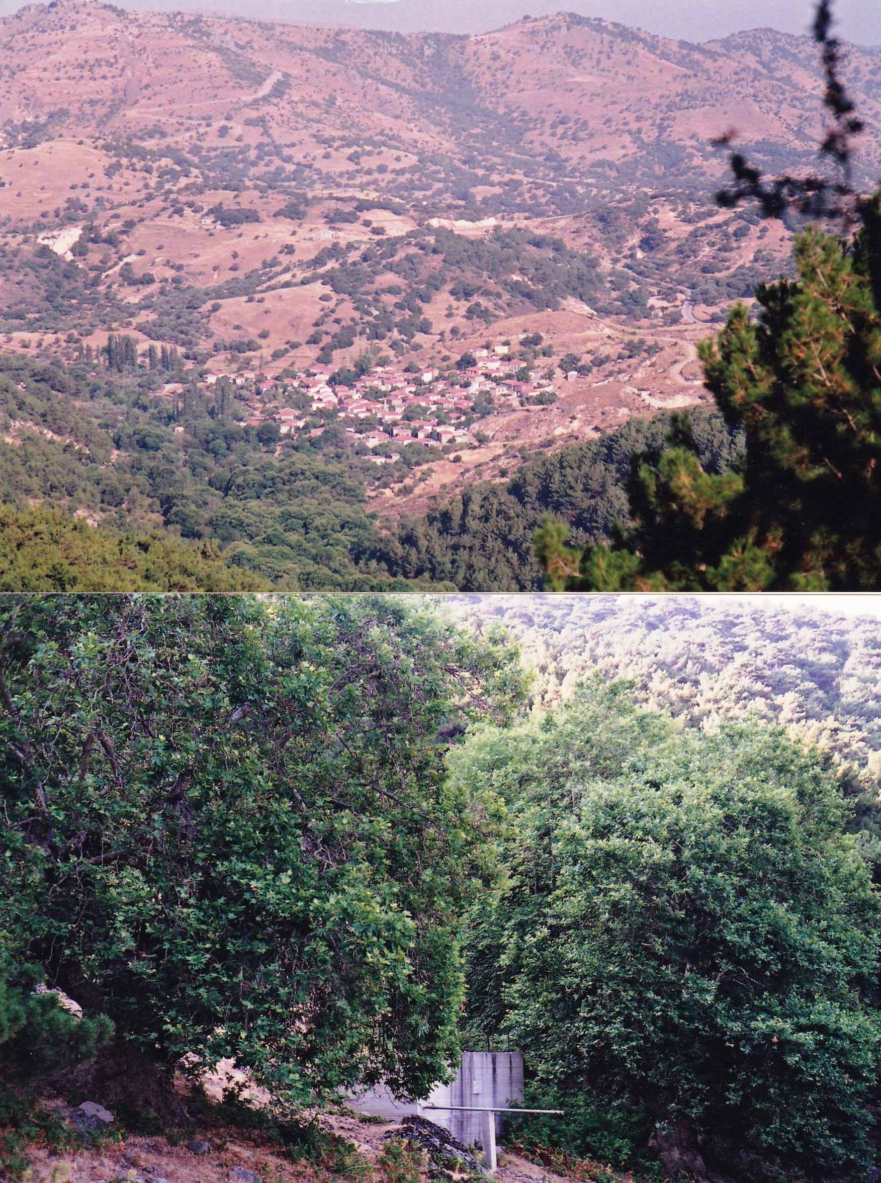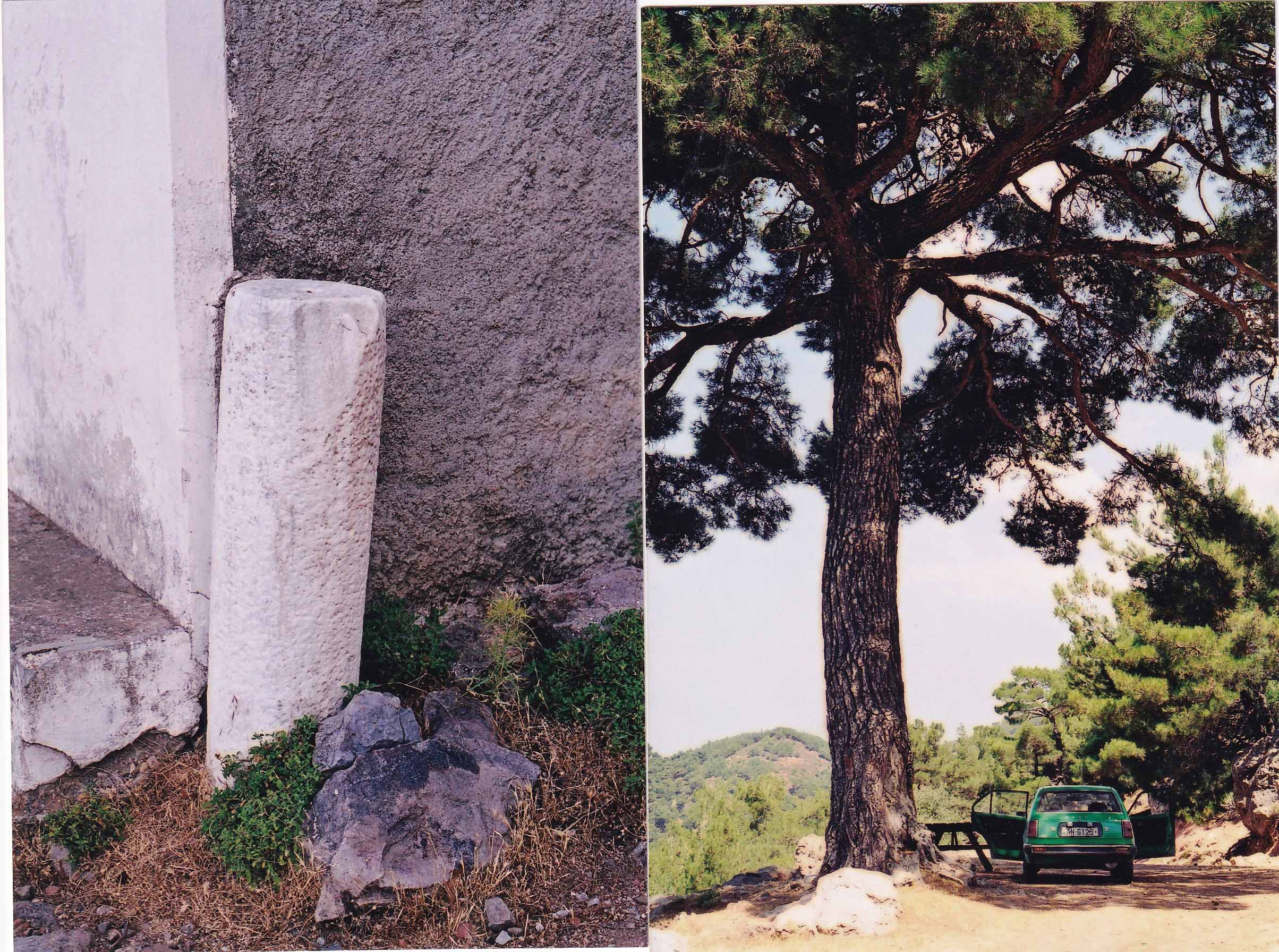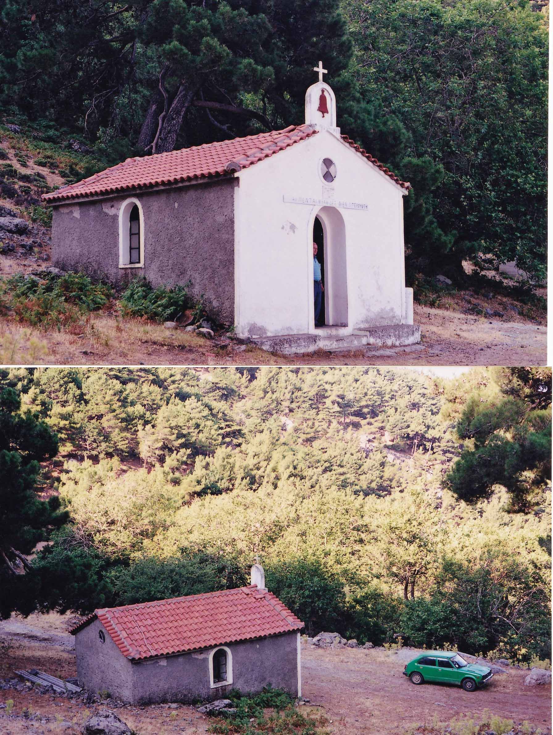 Επάνω από την Φτερούντα, στην δυτική, πευκόφυτη πλαγιά του Αι Λια, φαίνεται η βραχώδης κορυφή του Καλέ (776 μ.), η δεύτερη μετά τον Αι Λια (799 μ.), ανατολικά της. Το μικρό εξωκκλήσι , ψηλά, είναι αφιερωμένο στους «Πέντε Αγίους». Βρίσκεται σε μια λεκάνη, με κορύφωση της τον Καλέ. Αυτό το βουνό, είναι ο «Λεσβιακός Λίβανος», το όρος με τα περισσότερα μοναστήρια, που καθώς δείχνουν οι πηγές ήκμασαν πριν και μετά την άλωση του νησιού από τους Τούρκους . Ο Γαβριήλ Μηθύμνης, το 1621 αναφέρει: «Άνωθεν ταύτης (της Φτερούντας) εστίν έτερον όρος υψηλόν ονομαζόμενον Λίβανος· έχει μονίδρυον, καλούμενον των Πέντε αγίων, εν τόπω ωραίω, αλλ’ ου δύνανται μένειν μοναχοί, υπό των αγαρηνών, ενίοτε εις ή δύο. Εισί σπήλαια έμπλεα οστέων ανθρώπων και τόποι ερημιτών». Εδώ, σώζονται μερικά μέλη εκκλησιάς (ένας κίονας) και μεταφέρθηκαν τρεις κολόνες στην εκκλησία της Φτερούντας, Σύμφωνα με τις πηγές ήταν προς τιμήν των Πέντε κορών της Λέσβου, που μαρτύρησαν και γιόρταζε στις 5 Απριλίου. Γι’ αυτό γράφει και ο ηγούμενος της Μονής Λειμώνος Κυπριανός το 1898, ότι υπήρχαν «ίχνη παλαιού ναού ερειπωμένου φαίνονται και αγιογραφία φθαρμένη το πλείστον και την Θεοτόκον παριστώσα διακρίνεται επί βράχου, πέριξ του οποίου εδώ και εκεί, ανθρώπινα οστά απαντώμενα αρκούντως, ενισχύουσι την εικασίαν, ότι αυτού το νεκροταφείον, της ως έφθημεν ειπόντες, μονής έκειτο και ότι η περισωθείσα αγιογραφία μια της σειράς των κοσμούντων αυτό εικόνων ην». Επίσης αναφέρει, ότι οι κάτοικοι της Φτερούντας, προ τεσσάρων ετών έσκαψαν περί τα δυο μέτρα και βρήκαν το ιερό του ναού και αγιογραφίες. Το επισκέφτηκα το 2002. Μια εξέδρα, με απέραντη θέα, με την Φτερούντα χαμηλά. Κάτω από αιωνόβια πλατάνια βρίσκονται οι Πηγές, των οποίων το νερό, τώρα με αντλιοστάσιο, οδηγείται στην Φτερούντα. Παλιά με ανοικτό αυλάκι κατηφόριζε και κινούσε τους 4 Νερόμυλους του χωριού. Στην πρόσοψη αναγράφεται «αι πέντε νεάνιδες αι εν πτερούντη». Αναφέρονται κρανία και οστά που έχουν βρεθεί κατά την διάνοιξη των δρόμων, προφανώς από την ύπαρξη των τάφων ερημιτών και των μοναχών. Όμως τα νέα στοιχεία, αποδεικνύουν την ύπαρξη του Μοναστηριού, στην εποχή των Γατελούζουν, αφού αναφέρεται το 1447, από τον Λατίνο Αρχιεπίσκοπο της Μυτιλήνης, Λεονάρδο τον Χίο. Αυτός σε επίσκεψη του στην Αγία Σιών, αναφέρει κάποιον μοναχό Γρηγόριο, που έμενε στην κορυφή του Ολύμπου και μετά «στον δρόμο του προς τον οικισμό του κάστρου των Αγίων Θεοδώρων, ζήτησε σε ένα μοναχικό τόπο το μοναστήρι των Αγίων Πέντε Αδελφών» (Α. Δ. Μαζαράκης Λεονάρδος ο Χίος (1395-1459, σελ. 126). Σ’αυτό το δάσος είναι «μπλεγμένη η Τραχεία πεύκη (Pinus brutia) με την Μαύρη πεύκη (Pinus nigra), βρίσκονται διάσπαρτες καστανιές, και στο πλάτωμα του Καλέ, εντοπίσαμε την Παιώνια (Paeonia mascula).