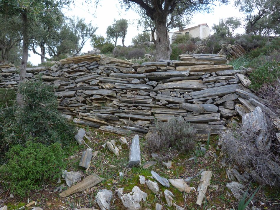 Η Κακοπετριά, στην οποία ανεβαίνει κανείς μετά τον Αϊ Γιώργη, είναι ένας απέραντος, ορεινός ελαιώνας, με αυτόν το σχιστόλιθο παντού!