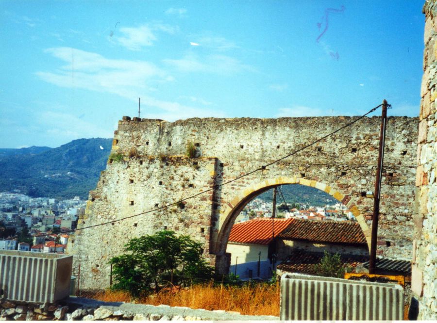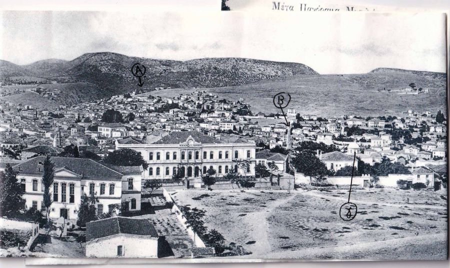 Πριν όμως δούμε τα έργα, θα δούμε συνοπτικά πώς μεταφέρθηκε το νερό στην Μυτιλήνη** που διψούσε και έπινε νερό από πηγάδια (οι άρχοντες είχαν ιδιωτικές κρήνες και μετέφεραν νερό από καλλιεργημένες, ιδιωτικές πηγές. Μερικές φορές κατασκεύαζαν και μια εξωτερική βρύση στον αυλότοιχο, για τον κόσμο). Το 1771, με εντολή του Χασάν Πασά , ο «Μεϊμάρης» φέρνει τα νερά των πανάρχαιων πηγών του Καγιανιού ( Ρωμαϊκές που κατά την επιγραφή του Αθανάδα, τροφοδοτούσαν το Ασκληπιείο της πόλης), με κτιστό αυλάκι, επενδυμένο με κουρασάνι και σκεπασμένο με πλάκες, που ερχόταν στις πλαγιές της Αμαλής και κατέληγε, αφού περνούσε απέναντι την Λαγκάδα , στις λεγόμενες Καμάρες. Πολλά κομμάτια του σώζονται ακόμα, στις πλαγιές, απ’όπου πενούσε. Αυτές οι καμάρες είναι ο μεγάλος νερόμυλος (που υπάρχει ακόμα ( δίπλα στο 2ο Δημοτικό σχολείο, στο Νιο Χωριό). Αυτός λειτούργησε με δεξαμενές καθίζησης, πριν το νερό οδηγηθεί στις βρύσες και στο κάστρο. Δεν γνωρίζουμε πόσο καιρό, γιατί τα πίτυρα από την άλεση, βρισκόταν στο πόσιμο νερό. Από αυτό το υψηλό μέρος της πόλης, το νερό με πήλινους αγωγούς μοιράστηκε στις 4 μεγάλες και 3 μικρότερες κρήνες, που χρηματοδότησε ο Χασάν Πασάς και κατασκευάστηκαν στην πόλη. Σ’αυτές πρέπει να προστεθούν και οι 4, που χάρισε ο δραγουμάνος του στόλου, Νικόλαος Μαυρογένης. Όμως το νερό έπρεπε να ανεβεί και στον λόφο του κάστρου. Να μπεί στην δεξαμενή (θεωρείται ότι υπήρχε, εκτός από την βροχή και προγενέστερη προμήθεια νερού στο κάστρο-Καμπουρίδης για το 1548), στις κρήνες του κάστρου ( και στα σπίτια που υπήρχαν εκεί) και στα λουτρά του. Έτσι κατασκευάστηκαν υδατόπυργοι (σου τερεζί) ανάμεσα στα δύο υψώματα, που οδηγούσαν το νερό στο κάστρο. Ο τελευταίος που έμεινε και φαινόταν σε φωτογραφίες των αρχών του 20ου αι. (στο Μέγα Πανόραμα Μυτιλήνης, που σημειώνω με Α τις Καμάρες, με Β τον Υδατόπυργο και με Γ το Γενί Τζαμί ) στο Πάρκο του Αγίου Ευδοκίμου, γκρεμίστηκε τα τελευταία χρόνια. Γι΄ αυτές τις κρήνες θα πούμε σε άλλο άρθρο.