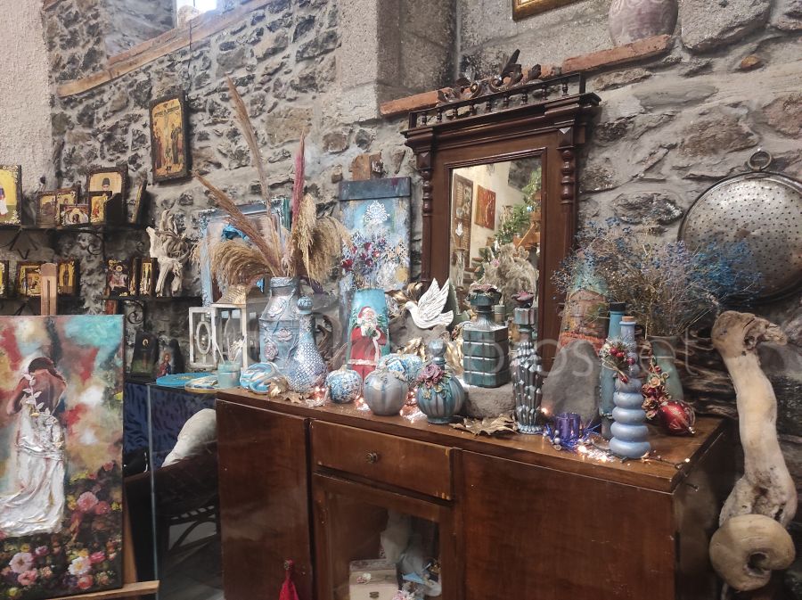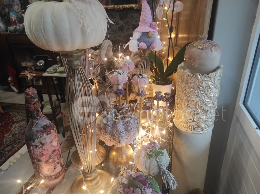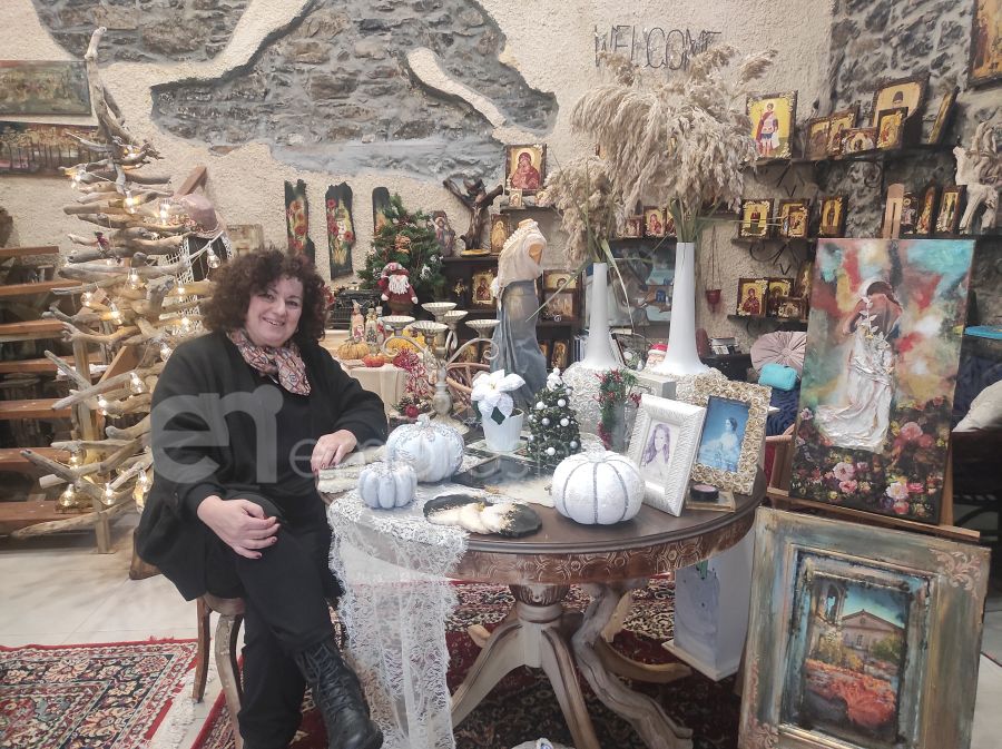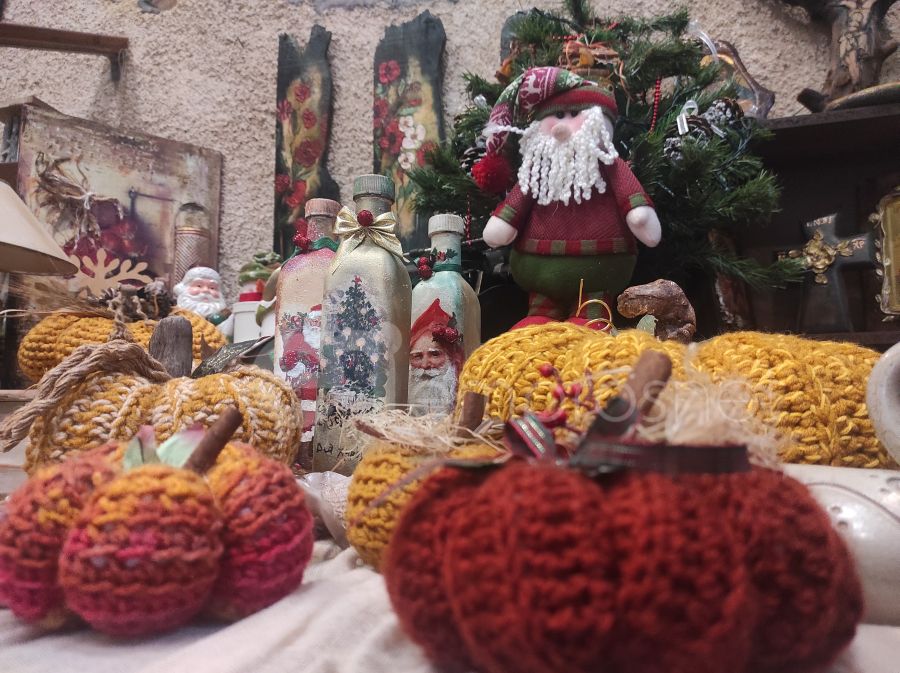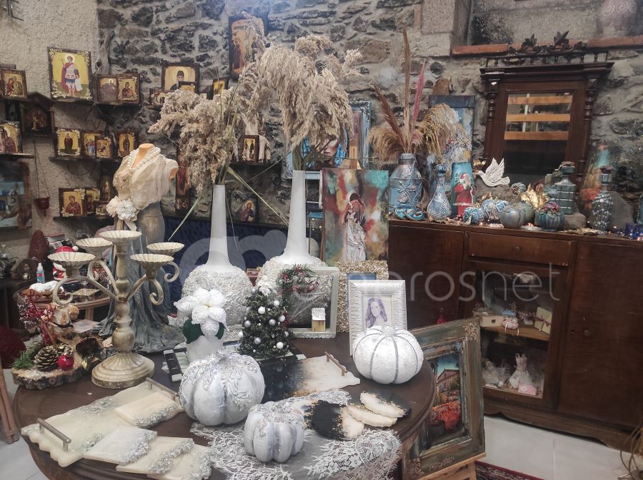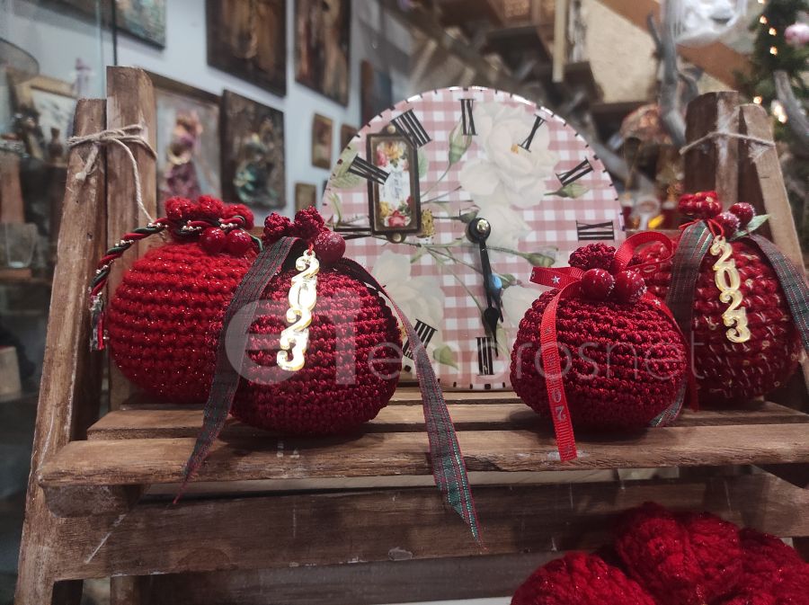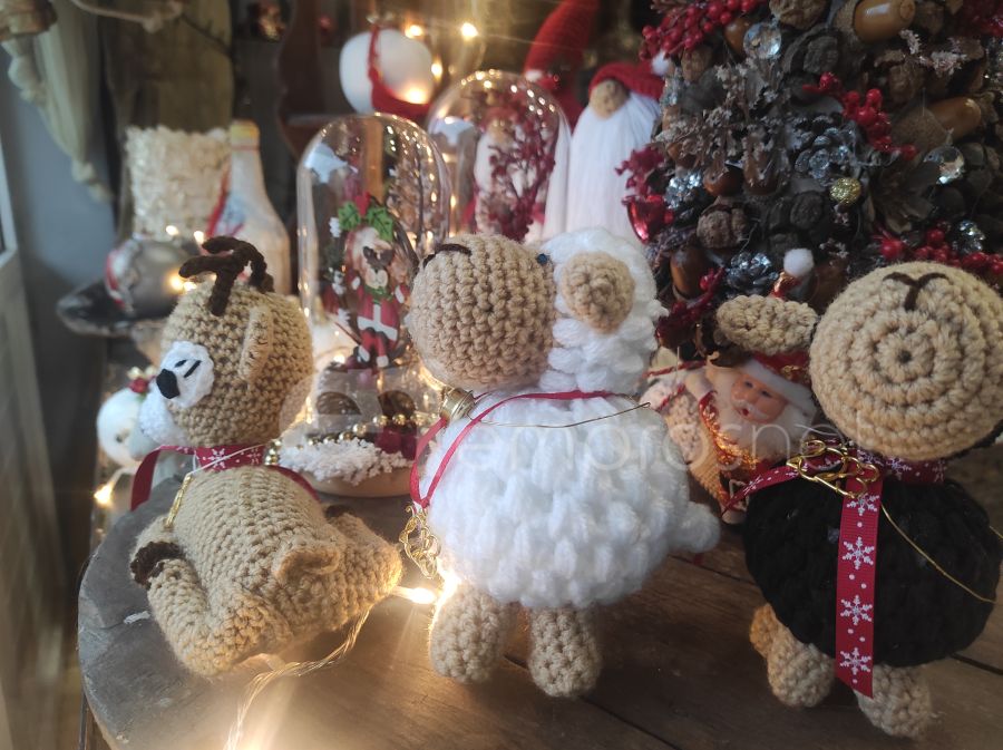 Ανάμεσα στα Χριστουγεννιάτικα στολίδια ξεχωρίσαμε τα πλεγμένα προβατάκια που έρχονται να μας θυμίσουν την φάτνη όπου γεννήθηκε το Θείο Βρέφος και τα Αλεξανδρινά και αυτά δημιουργημένα από ένα βελονάκι που έδωσε σε κόκκινες και πράσινες κλωστές σχήμα και ζωή. Αναμφισβήτητα όλα τα στολίδια που θα συναντήσει κανείς στο εργαστήρι αυτό και έρχονται να κοσμήσουν ένα σπίτι τις ημέρες των Χριστουγέννων είναι όλα χειροποίητα και με πολύ γούστο τόσο που είναι αρκετό να μην βρούμε ψεγάδι πάνω τους. Παράλληλα μπορεί κανείς να εντοπίσει όλα εκείνα τα αντικείμενα που συνθέτουν ένα σπίτι φτιαγμένα «δια χειρός» από την υπεύθυνη του καταστήματος και ζωγράφο – αγιογράφο, Μαρία Γερογιάννη.