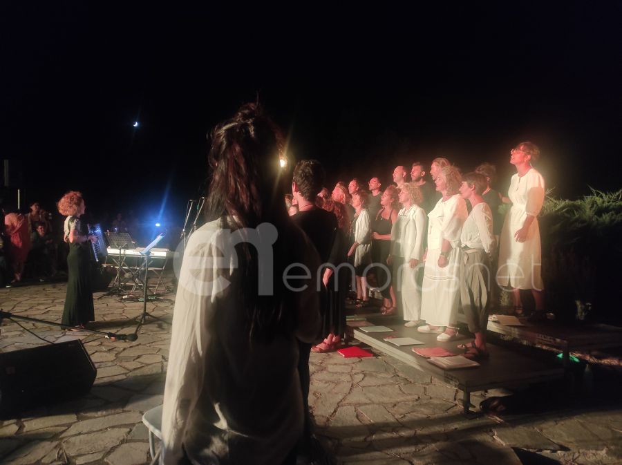 Τα στελέχη της Εφορείας Αρχαιοτήτων Λέσβου σε συνεργασία με τέσσερα φωνητικά σύνολα και συγκεκριμένα Πλειάδες, Fractals, Θερίζονες και χορωδία Cantaλαλούν κατάφεραν να προσφέρουν στο κοινό, που πλημμύρισε κυριολεκτικά τον αρχαιολογικό χώρο, μια ξεχωριστή βραδιά.