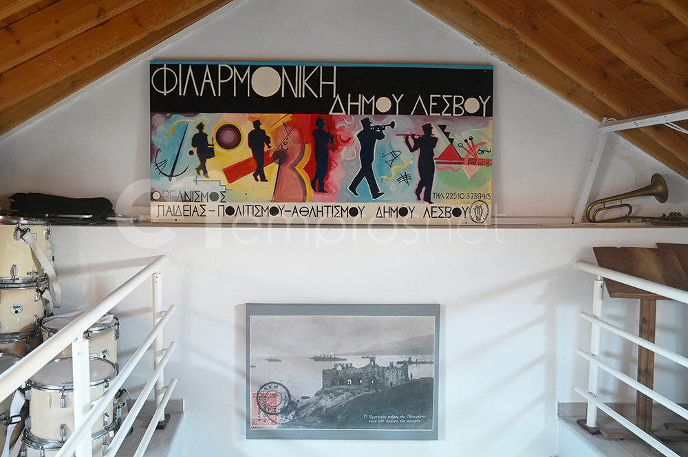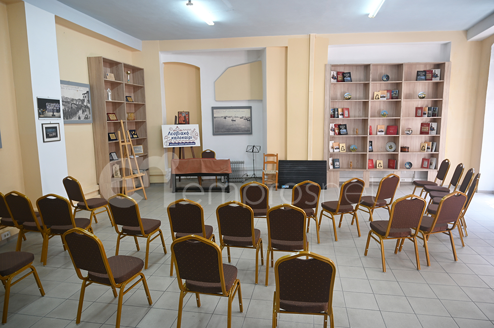 Ξεναγώντας στο κτίριο ο κ. Τσακύρης είπε: «Το νέο Κέντρο περιλαμβάνει αίθουσα για τη Χορωδία, η οποία λειτουργεί και ως αίθουσα εκδηλώσεων μικρής κλίμακας, αίθουσα για το Χορευτικό και αίθουσα για τη Φιλαρμονική. Συγκεντρώθηκαν σε ντουλάπες όλα τα όργανα της Φιλαρμονικής και δημιουργήθηκε βεστιάριο για το Χορευτικό. Επίσης, συντηρηθήκαν 30 πίνακες σε μουσαμά με φωτογραφίες του Σ. Χουτζαίου με θέμα την Απελευθέρωση της Μυτιλήνης, οι οποίοι είχαν φτιαχτεί το 2012 για τον εορτασμό των 100 χρόνων από την Απελευθέρωση του νησιού και βρίσκονταν σε αχρηστία. Δημιουργήσαμε έτσι μια μόνιμη Έκθεση Φωτογραφίας».
