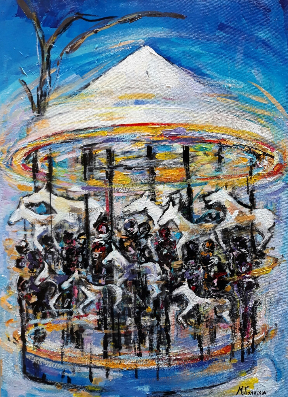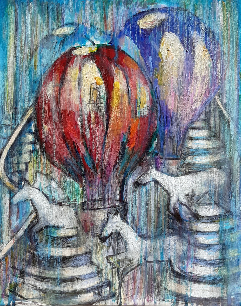 Κάθε έργο για την καλλιτέχνη είναι ένας μοναδικός τόπος ταξιδιού, είναι μια στιγμή - στιγμές που έχουν οδηγήσει σε αυτό το αποτέλεσμα. Ο καμβάς εκείνος που έχει αγκαλιάσει άλογα και αερόστατα είναι από τους πιο αγαπημένους της Μαρίας Γιαννίκου από αυτή τη σειρά έργων. Αυτό γιατί αποπνέει την ώθηση που μπορεί να έχει κάποιος προς τα πάνω. «Είναι το πέταγμα εκείνο που μας ξεκολλάει από τα τετριμμένα και μας αφήνει να ονειρευτούμε και να ζήσουμε κάτι άλλο, κάτι διαφορετικό. Ένα έργο που μπορεί να ονειρευτούμε, να αγαπήσουμε & να ονειρευτούμε μπορεί να έχει δημιουργηθεί σε μια πολύ άσχημη εποχή. Ωστόσο ποτέ δεν ξέρεις που μπορεί να σε οδηγήσει μία πινελιά, μια εικόνα ζωής. Δεν ζωγραφίζουμε όταν είμαστε ευτυχισμένοι, ζωγραφίζουμε όταν έχουμε να πούμε κάτι, όταν έχουμε λόγο ύπαρξης» είπε η κα Γιαννίκου τονίζοντας ότι το μήνυμα που θέλει να περάσει είναι εκείνο της χαράς, της αισιοδοξίας, της αγάπης που σε αυτή την εποχή τα έχουμε χάσει, γιατί μας έχει καταβάλει ένας αρνητισμός.