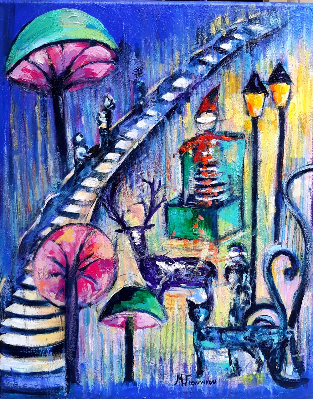 «Πρέπει να συμβιβαστούμε με την νέα εποχή, ήρθε για να μείνει, όμως η ζωή μας είναι εδώ και θα πρέπει να την κάνουμε όσο πιο χρωματιστή γίνεται» κρατώντας αυτό το μήνυμα ταξιδέψαμε στην έκθεση «Imaginary Cities» της Μυτιληνιάς ζωγράφου Μαρίας Γιαννίκου. Πρόκειται για μια έκθεση που είχε προγραμματιστεί να παρουσιαστεί τον Οκτώβριο του 2020 στο Παρίσι, ωστόσο η εποχή της πανδημίας έχει αποτρέψει την πραγματοποίηση πολλών εκθέσεων. Έτσι τα έργα ξεκίνησαν μέσα από την Galerie Desmos να ταξιδεύουν σε όλο τον κόσμο διαδικτυακά. Γιατί όταν υπάρχει θέληση, υπάρχουν τρόποι και επειδή η τέχνη δεν εγκλωβίζεται αλλά πρέπει να ταξιδεύει ανοίγοντας νέους ορίζοντες.