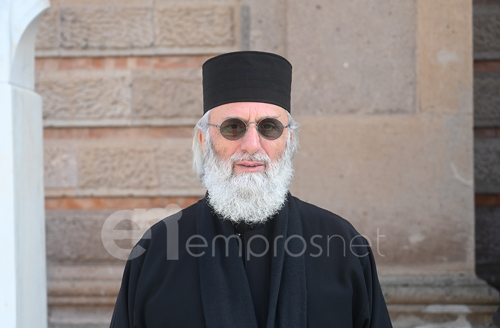 «Από το 1989 είχαμε διαπιστώσει μαζί με τον σεβασμιότατο Μητροπολίτη Μυτιλήνης τα προβλήματα που είχε ο Ναός και ξεκινήσαμε τότε ένα σημαντικό έργο. Ωστόσο τότε οι ειδικοί μας είχαν πει ότι μετά από 10 -20 χρόνια θα είχαμε πάλι τα ίδια προβλήματα. Ο Άγιος Θεράποντας είναι ένα σήμα κατατεθέν της Μυτιλήνης και είναι πολύ φυσικό του κατά διαστήματα να αντιμετωπίζει προβλήματα. Αυτό που μας απασχολεί είναι ότι από τον κεντρικό τρούλο έμπαιναν νερά στο εσωτερικό χώρο του ναού. Απευθυνθήκαμε πριν το 2013 -αν δεν με απατά η μνήμη- στον ηγούμενο της Μονής Βατοπεδίου στο Άγιο Όρος. Του έγραψα ένα γράμμα ότι ο ναός είναι αφιερωμένος στον Άγιο Θεράποντα. «Κύπριος ο Άγιος Θεράποντας, Κύπριος και εσείς βοηθήστε ούτως ώστε να μπορέσουμε να φτιάξουμε το ναό, να συνταχθεί μία μελέτη που να πληροί όλες τις προϋποθέσεις για να μπορέσει να ξεκινήσει αυτό το έργο». Πράγματι ο πατήρ Εφραίμ ανταποκρίθηκε τότε και όπως θα θυμούνται πολλοί συμπολίτες μας το 2015 όταν εκπονήθηκε η μελέτη μας έφερε την εικόνα της Παναγίας της Βηματάρισσας. Έγιναν διάφορες εκδηλώσεις για τη συμπλήρωση 100 χρόνων από την επέτειο των εγκαινίων του ναού και παραδόθηκε αυτή η μελέτη. Στην συνέχεια η μελέτη κατατέθηκε στο υπουργείο Πολιτισμού, εγκρίθηκε και είμαστε στην ευχάριστη θέση τώρα να δρομολογείται πλέον η υπόθεση του έργου της σκεπής, των τρούλων και όχι μόνο. Χαιρόμαστε γιατί έχουμε συμπατριώτες να έχουν αναλάβει το έργο καθώς πρόεδρος του ΔΣ της εταιρείας «ΑΚΛΙΜΩΝ ΤΕΧΝΙΚΗ Α.Ε.» είναι ο Αχιλλέας Καρπούζης και ο κ. Μιχάλης Κινικλής ο πολιτικός μηχανικός που το επιμελείται» είπε σε συνέντευξή του στο «Ε» ο π. Γιουσμάς.