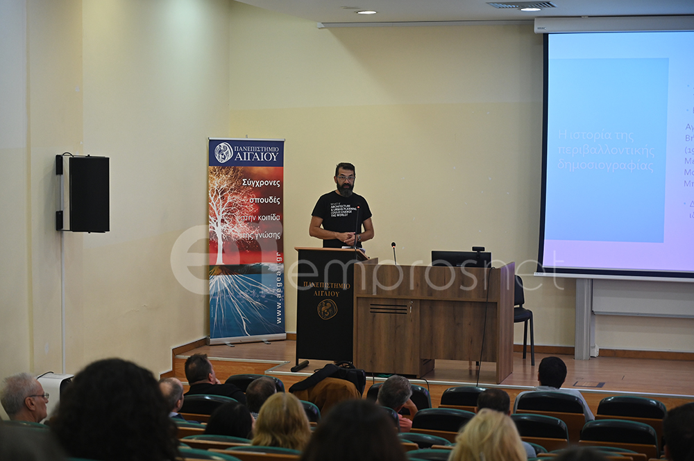 Ο κ. Λιάλιος ήταν καλεσμένος την Παρασκευή 20 Οκτωβρίου από το Τμήμα Περιβάλλοντος του Πανεπιστημίου Αιγαίου και ομιλητής της διάλεξης με θέμα: «Περιβαλλοντική Δημοσιογραφία». Ο κ. Λιάλιος σπούδασε Επικοινωνία και ΜΜΕ στο Πανεπιστήμιο Αθηνών και έκανε μεταπτυχιακό στην Πολεοδομία-Χωροταξία στο ΕΜΠ. Εργάζεται στην Καθημερινή από το 1999, τα πρώτα επτά χρόνια ως ελεύθερος συντάκτης και από το 2004 ως συντάκτης για περιβαλλοντικά και πολεοδομικά θέματα, καθώς και δημόσια έργα. Τον κ. Λιάλιο προλόγισε ο καθηγητής του Τμήματος Περιβάλλοντος, Γιάννης Σπιλάνης.