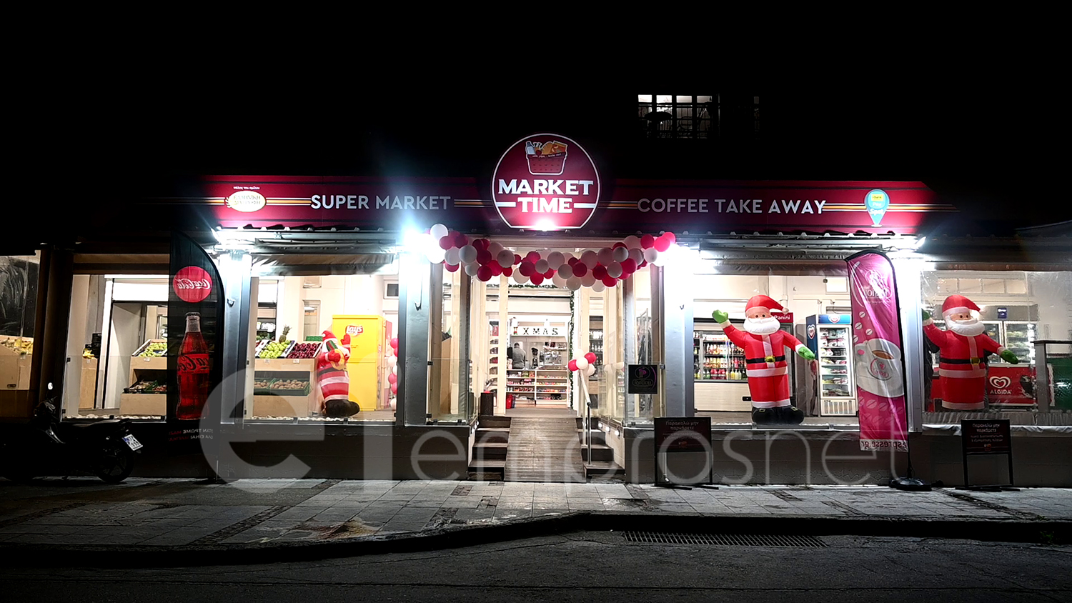 Άλλαξε διεύθυνση ωστόσο συνεχίζει να διατηρεί τις ίδιες χαμηλές τιμές, οι οποίες στις περισσότερες - αν όχι όλες- των περιπτώσεων είναι αναμφισβητήτως χαμηλότερες από εκείνες των επώνυμων super market. Το Market Time μεταφέρθηκε, από την Χρυσομαλλούσα, στην οδό Ελευθερίου Βενιζέλου 42. Εκεί οι Βαγγέλης Λαϊνάς και Ελπινίκη Βαφειώτου με 14, περίπου, χρόνια εμπειρίας στον χώρο του εμπορίου μεταμόρφωσαν την παλιά και γνωστή σε όλους καφετέρια Σελάνα σε ένα πλήρες εξοπλισμένο super market της γειτονιάς που διαθέτει υπηρεσίες πρόσθετες εκείνες των συνηθισμένων.