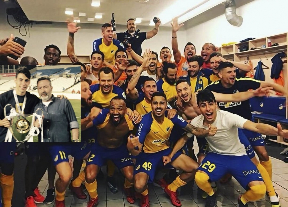 Με γκολ στο 88ο λεπτό ο ΑΠΟΕΛ νίκησε 2-1 την Ανόρθωση στην τελευταία αγωνιστική των Playoffs, ολοκληρώνοντας έτσι την ανατροπή τίτλου, κατακτώντας το κυπριακό πρωτάθλημα! Η ομάδα του Πραξιτέλη Βούρου ισοφάρισε μάλιστα το ρεκόρ της Ομόνοιας με τις έξι σερί κατακτήσεις, αφού κυριαρχεί απόλυτα στο νησί τα τελευταία χρόνια. Ο Μυτιληνιός αμυντικός, αν και δεν αγωνίστηκε στο συγκεκριμένο ματς, πανηγύρισε με τους συμπαίκτες του τον τίτλο, που είναι ίσως και ο πιο… γλυκός, αφού πέρασε από χίλια κύματα μέχρι να βρεθεί ο ΑΠΟΕΛ στην κορυφή. Για τον «Πράξι» το συγκεκριμένο τρόπαιο έρχεται να προστεθεί στα τρία πρωταθλήματα Ελλάδας (2013, 2014, 2015) και το Κύπελλο (2015) που έχει κατακτήσει με τον Ολυμπιακό, συνεχίζοντας έτσι να γεμίζει την τροπαιοθήκη του, παρότι διανύει μόλις το 22ο έτος της ηλικίας του. Στη λήξη του αγώνα στο ΓΣΠ της Λευκωσίας, οι φίλαθλοι ξέσπασαν σε πανηγυρισμούς, ενώ μετά την απονομή ο Πραξιτέλης φωτογραφήθηκε εντός του αγωνιστικού χώρου και με τον πατέρα του, Θόδωρο, που βρέθηκε στην Κύπρο για το τελευταίο ματς των Playoffs, βιώνοντας σε απόλυτο βαθμό αυτό το χιτσκοκικό θρίλερ.