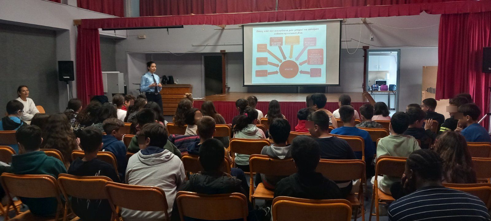 Ενημερωτική δράση στο 15ο Δημοτικό Σχολείο Μυτιλήνης, πραγματοποίησαν τα στελέχη του Γραφείου Αντιμετώπισης Ενδοοικογενειακής Βίας της Διεύθυνσης Αστυνομίας Λέσβου και η Ψυχολόγος της Γενικής Περιφερειακής Αστυνομικής Διεύθυνσης Βορείου Αιγαίου με θέμα «Ενδοοικογενειακή βία – Προστασία & Ασφάλεια Μαθητών» όπως σημειώνεται σε σχετική ανάρτηση σε ΜΚΔ της Γε.Π.Α.Δ. Β. Αιγαίου.