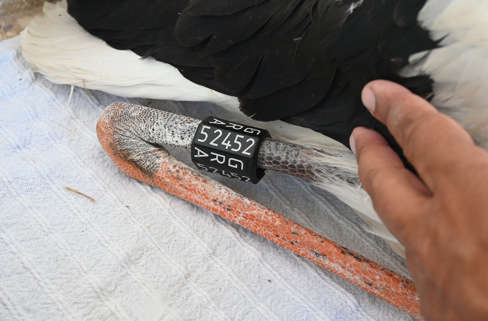 Τα δαχτυλίδια που τοποθετούνται στους Λευκοπελαργούς στη χώρα μας είναι μαύρα με άσπρους χαρακτήρες (μοναδικούς για κάθε δαχτυλίδι!). Στόχος είναι να εντοπιστούν και αναγνωστούν ξανά όταν το πουλί βρεθεί αλλού, έχοντας με επιτυχία εγκαταλήψει τη φωλιά του, ώστε να μπορέσουμε να βγάλουμε διάφορα χρήσιμα συμπεράσματα για τη βιολογία και οικολογία του.