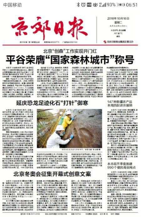 Ειδικότερα, κατά τη διάρκεια του προγράμματος συντήρησης απολιθωμάτων πραγματοποιήθηκε επιτόπια επίσκεψη ομάδας επιστημονικού και τεχνικού προσωπικού και πραγματοποίηση εργασιών προστασίας, συντήρησης και ανάδειξης των αποτυπωμάτων δεινοσαύρων, οι οποίοι ζούσαν στην περιοχή πριν από περίπου 150 εκατομμύρια χρόνια. Σε ειδικά ικριώματα ύψους 35 μέτρων που στήθηκαν στο γεωλογικό αυτό μνημείο της Κίνας εφαρμόστηκαν νέες τεχνικές συντήρησης.