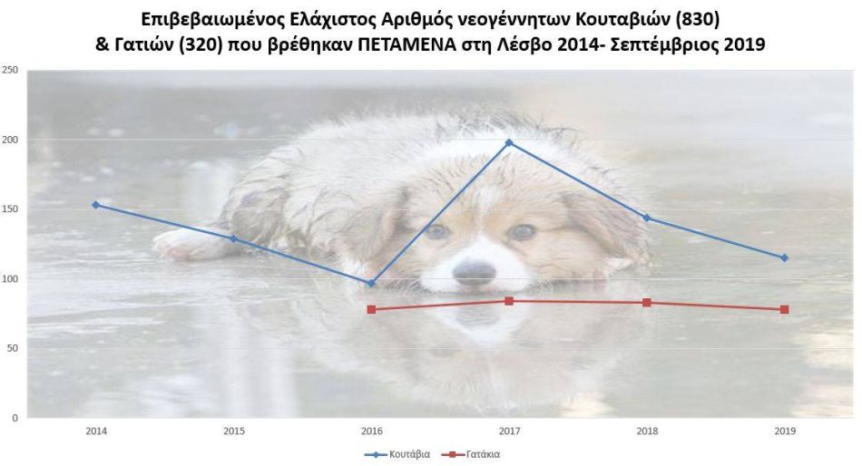 Μόνο για τους 9 πρώτους μήνες του 2019 σύμφωνα με τα στοιχεία της ΚΙΒΩΤΟΥ Μυτιλήνης, τουλάχιστον 115 κουτάβια και 75 γατάκια πετάχτηκαν σαν σκουπίδια για να πεθάνουν ή να γίνουν "αδέσποτα".