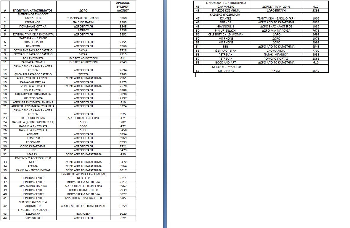Τα αποτελέσματα της λαχειοφόρου του Εμπορικού Συλλόγου Μυτιλήνης