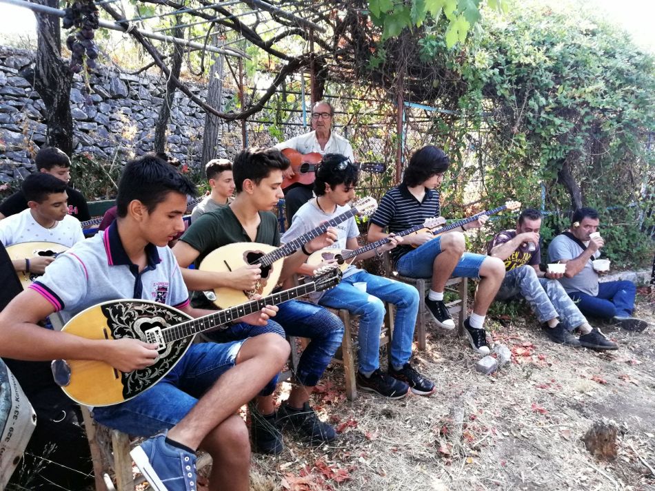 Τα παιδιά του Τμήματος Παραδοσιακής Μουσικής του Αναγνωστηρίου με μπουζούκια, τζουράδες και μπαγλαμάδες έπαιξαν όμορφους παραδοσιακούς και ρεμπέτικους σκοπούς προς τέρψη των εκδρομέων.