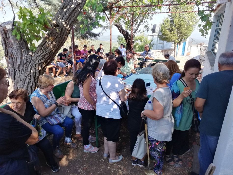Μετά τη θεία λειτουργία και την αρτοκλασία στο ναΰδριο του Ταξιάρχη, που τέλεσε ο ιερέας Νεκτάριος Χάιδος, ακολούθησαν τα κεράσματα (καφέδες, εδέσματα και γλυκά).