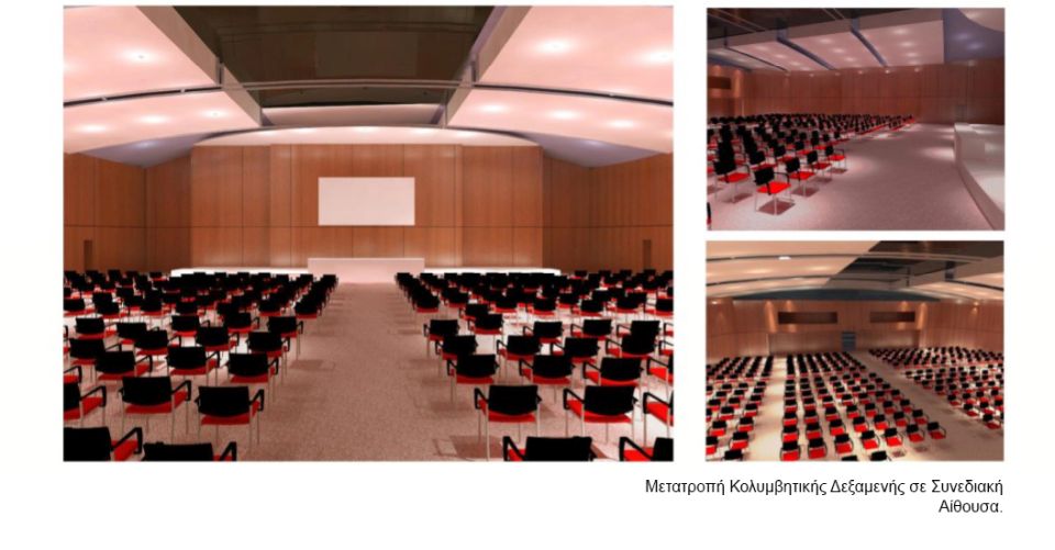 Κεντρικός Πυρήνας (επιφάνεια κολυμβητικής δεξαμενής): Ο χώρος μετά από κατάλληλες στατικές παρεμβάσεις θα αποτελέσει την κεντρική αίθουσα του συνεδριακού κέντρου, χωρητικότητας περίπου 350 θέσεων.