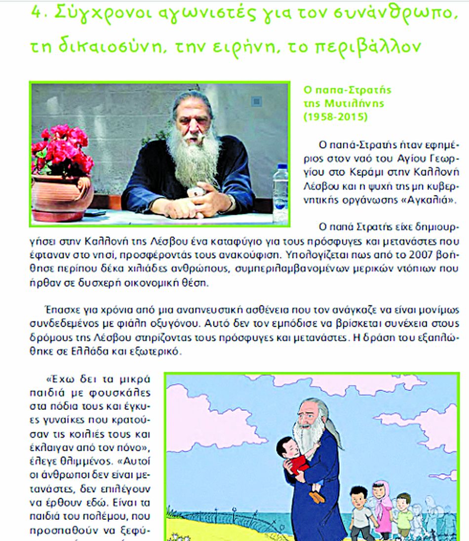 Η αναφορά στον παπα-Στρατή στο βιβλίο των Θρησκευτικών της Δ΄ Δημοτικού