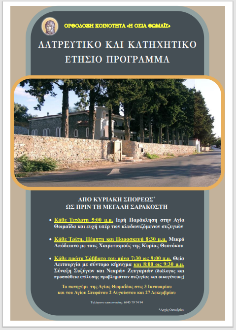 Την Δευτέρα 14 Οκτωβρίου 2024 ξεκινάν οι κατηχητικές συνάξεις που πραγματοποιούνται εδώ και δύο δεκαετίες.