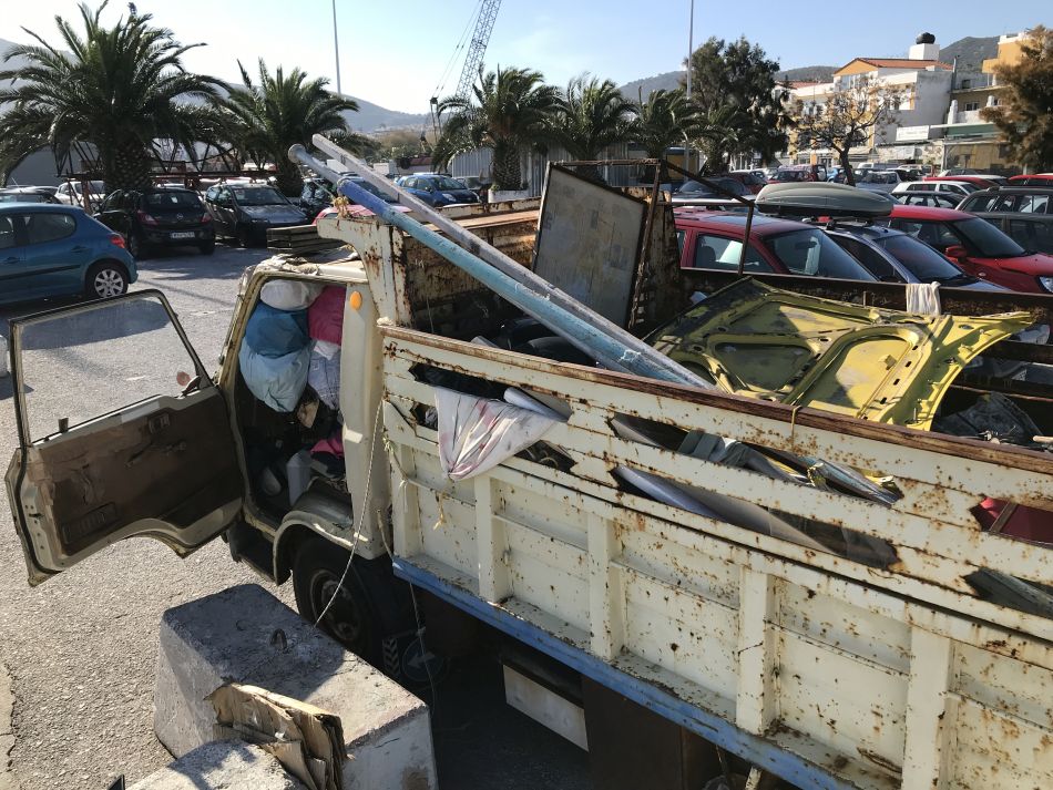 Ξεχαρβαλωμένο και ακινητοποιημένο στο πάρκινγκ Μυτιλήνης, του έδωσε 33 χρόνια δουλειά και τώρα… ένα κρεβάτι.-Φωτογραφίες: ΙΓΝΑΤΗΣ ΤΣΙΚΝΗΣ