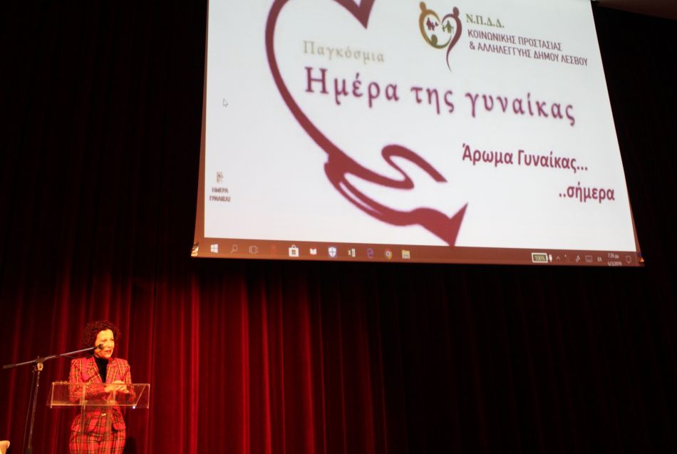 Με επιτυχία πραγματοποιήθηκε χθες το απόγευμα στο γεμάτο από κόσμο Ρουσέλλειο Δημοτικό Θέατρο Μυτιλήνης, η εκδήλωση «Άρωμα Γυναίκας… σήμερα!», που οργάνωσαν με αφορμή την Παγκόσμια Ημέρα της Γυναίκας ο Οργανισμός Κοινωνικής Προστασίας και Αλληλεγγύης και ο Ξενώνας Φιλοξενίας Γυναικών του Δήμου Λέσβου.