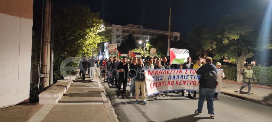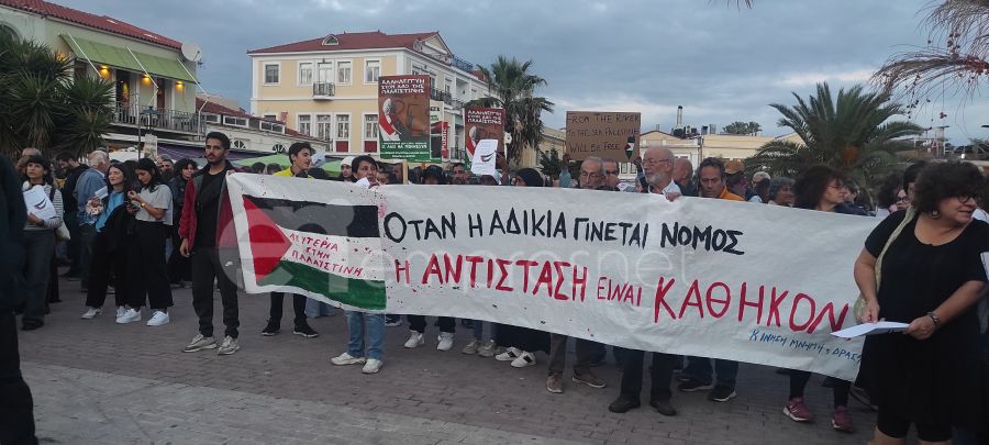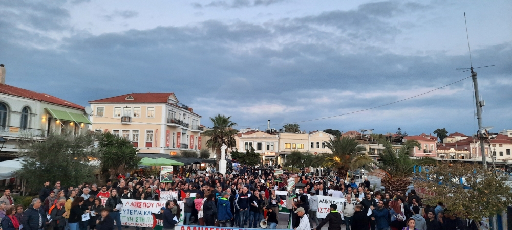 Με μια μεγάλη και δυναμική συγκέντρωση και πορεία, πλήθος λαού και νεολαίας έστειλαν την Τετάρτη 18 Οκτώβρη, από τη Μυτιλήνη, μήνυμα αλληλεγγύης στο λαό της Παλαιστίνης. Με συνθήματα όπως: «Αλληλεγγύη στην πάλη των λαών, κάτω η νέα τάξη των ιμπεριαλιστών» και «Το έγκλημα αυτό έχει υπογραφή ΝΑΤΟ, ΕΕ και Ισραηλινοί» οι διαδηλωτές απαίτησαν «να σταματήσει το έγκλημα σε βάρος του λαού της Παλαιστίνης και να μην υπάρξει καμιά συμμετοχή της Ελλάδας στο πλευρό του Ισραήλ».