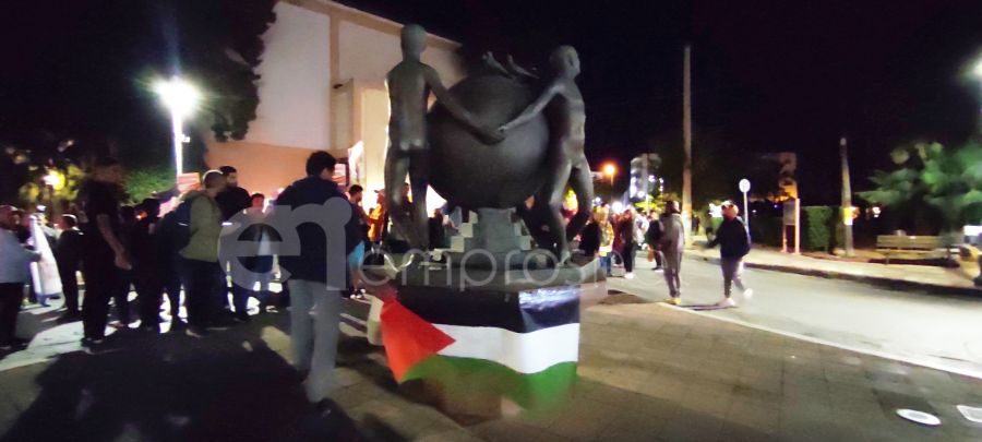 Είμαστε εδώ σήμερα για να γίνουμε οι φωνή όλων αυτών που τους την έχουν στερήσει. Των πάνω από 6 εκατομμύρια παλαιστινίων προσφύγων, που πολλοί από αυτούς πέρασαν η είναι τώρα εγκλωβισμένοι στο νησί μας, των πάνω από 100 χιλιάδων νεκρών παλαιστίνιων από ισραηλινά πυρά, των χιλιάδων πολιτικών κρατούμενων. Και φωνάζουμε για το δικαίωμα τους να ζήσουν ειρηνικά, στις δικές τους πόλεις και με δικό τους κράτος ελεύθερο και ανεξάρτητο. Και το λέμε ξανά, σε όποιον πονηρό μας ρωτάει αν στηρίζουμε τρομοκράτες, αν καταδικάζουμε τη βία από όπου και αν προέρχεται: ΌΠΟΙΟΣ ΕΙΝΑΙ ΜΕ ΤΗΝ ΕΙΡΗΝΗ, ΕΙΝΑΙ ΜΕ ΤΗΝ ΠΑΛΑΙΣΤΙΝΗ. Όποιος θέλει να σταματήσουν οι σφαγές αμάχων, όποιος θέλει να σταματήσει η φρίκη του πολέμου, να ζήσουν οι λαοί της Παλαιστίνης και του Ισραήλ αδελφωμένα, πρέπει να είναι ενάντια στην κατοχή.Με τους λαούς λοιπόν, που παλεύουν για λευτεριά και δίκιο. Αλληλεγγύη στην Παλαιστίνη!»
