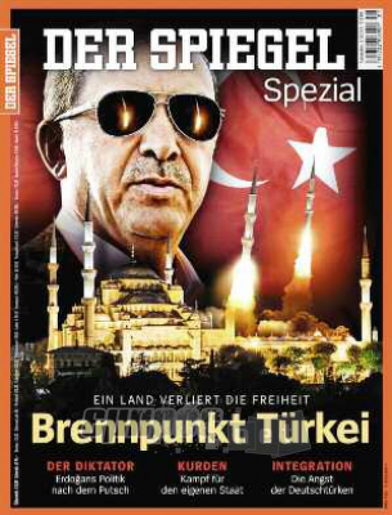 Πιο χαρακτηριστικό, το τελευταίο τεύχος του γερμανικού «Spiegel», αφιερωμένο στην Τουρκία, όπου παρουσιάζει τον Ερντογάν ως δικτάτορα και την Τουρκία ως μία χώρα που χάνει την ελευθερία της. Σάλος και οργή στην Τουρκία και όπως ήταν φυσικό, το αρμόδιο Υπουργείο μιλάει για «μια αρνητική εικόνα, όχι μόνο της Τουρκίας αλλά και του Ισλάμ»!