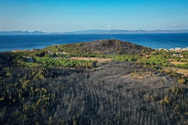 Τις τελευταίες ημέρες σημειώθηκαν μεγάλες πυρκαγιές απέναντι που ήσαν ορατές κι από τη Λέσβο, μάλιστα λόγω του Β.Α. ανέμου έφθανε έως εμάς ακόμη και η μυρωδιά του καμένου πεύκου. Στο Αϊβαλί η δασική πυρκαγιά εκδηλώθηκε στο λόφο του Σεϊτάν Σοφρά (Τραπέζι του Διαβόλου) και στην πίσω από αυτό παραλία του Σαρμουσάκ κατακαίοντας 53 εκτάρια (530 στρέμματα) δάσους, εκ των οποίων τα 40 εκτάρια μέσα στο κηρυγμένο φυσικό πάρκο. Θλίψη και αγανάκτηση προκάλεσε σε πολίτες, περιβαλλοντικές οργανώσεις και Δήμο η φωτιά που είχε εκδηλωθεί στο ίδιο μέρος και πριν μερικά χρόνια. Μάλιστα καταστράφηκε και το αναδασωμένο τμήμα, γεγονός που απογοήτευσε εθελοντές και όλοι πια μιλούν για το ότι οι μελλοντικές αναδασώσεις που θα πρέπει να γίνονται όχι μόνον με την «ψυχή» αλλά με στρατηγική και επιστημονική γνώση. Σύμφωνα με τις Αρχές η φωτιά προήλθε από βραχυκύκλωμα ηλεκτροφόρων καλωδίων μέσα στο δάσος, γι’ αυτό και ο Δήμαρχος έσπευσε να εξαγγείλει την υπογείωση του ηλεκτρικού δικτύου μέσα στον εθνικό δρυμό. Μεγάλη πυρκαγιά σε χωράφια πίσω απ τους λόφους της πόλης εκδηλώθηκε και στο Δικελί που τρομοκράτησε τους κατοίκους, ευτυχώς όμως σβήστηκε έγκαιρα.