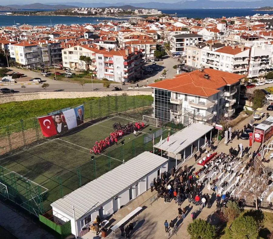 Ο Δήμαρχος του Μητροπολιτικού Δήμου Balıkesir Ahmet Akın ο έπαρχος Καιμακάμης, Χασάν Γιαμάν, ο Δήμαρχος Αϊβαλιού, Μεσούτ Εργκίν, ο Δήμαρχος Γκιόμετς, Μελίχ Μπαγτζί, ο Πρόεδρος της AyvalıkgücüBelediyespor, Μεχμέτ Μπαμπαγίτ παρέστησαν προχτές στα εγκαίνια του νέου γηπέδου 5χ5 μέσα στ’ Αϊβαλί. Παρέστησαν επίσης τα μέλη της οικογένειας του Murat Ustalı, ποδοσφαιριστή αθλητή και υποστηρικτή της τοπικής ομάδας, ο οποίος έχασε τη ζωή του πολύ νέος, σε τροχαίο ατύχημα τον περασμένο Ιούνιο, το όνομα του οποίου δόθηκε στο νέο γήπεδο. Πλήθος κόσμου και ποδοσφαιρόφιλοι και μη ήλθαν στο νέο γήπεδο αποτείνοντας τιμή στον νέο πρόωρα χαμένο ποδοσφαιριστή..
