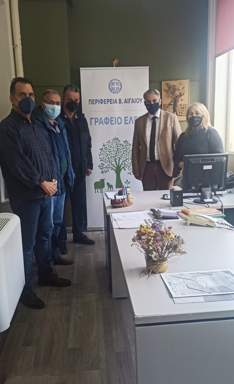 Την αποστολή συνοδεύει ο Διευθυντής Υποκαταστήματος Αττικής και Νήσων Αιγαίου Δημήτριος Μπόλος. Προηγήθηκε συνάντηση του κλιμακίου με τον Αντιπεριφερειάρχη της Περιφερειακής Ενότητας Λέσβου με αρμοδιότητα στον Πρωτογενή Τομέα για το Βόρειο Αιγαίο, Πανάγο Κουφέλο παρουσία του Προϊστάμενου της Διεύθυνσης Αγροτικής Οικονομίας στη Λέσβο, Γεώργιο Λαγουτάρη όπου συζητήθηκαν αναλυτικά τα προβλήματα που αντιμετωπίζουν οι παραγωγοί και άπτονται των αρμοδιοτήτων του ΕΛΓΑ.