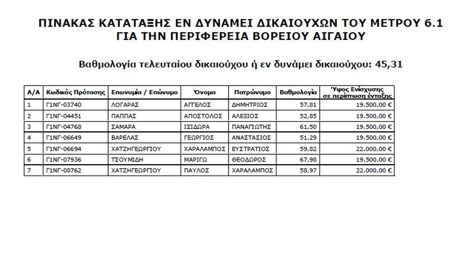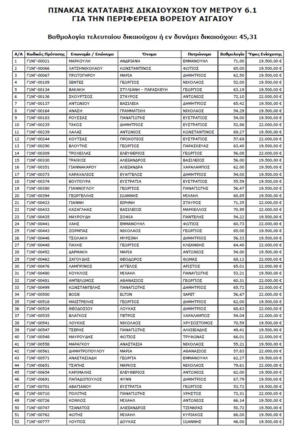 539 οι δικαιούχοι στην Περιφέρεια 320 στη Λέσβο