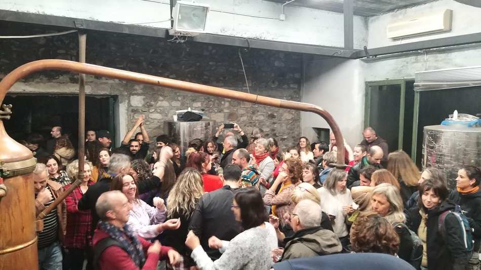 Παράλληλα, το ρακοκάζανο απόσταζε ελευθερώνοντας εξωστρεφείς αλκοολικούς ατμούς…και η αίθουσα γευσιγνωσίας ήταν ανοιχτή για δοκιμές των προϊόντων της Κοιν.Σ.Επ., με φόντο την Έκθεση Φωτογραφίας του Γιώργου Πτερούντιου και θέμα «Κρυμμένα Όνειρα στην Ομίχλη».