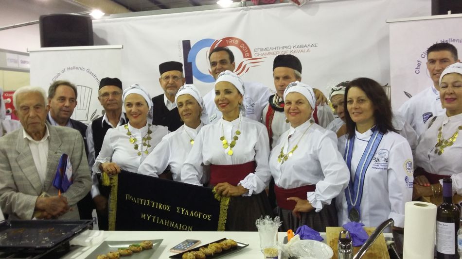 Ο Πρόεδρος του Club Στέλιος Δίγκας και οι executive chefs της Λέσχης Νίκος Κεχαγιάς, Θεοφάνης Κασσούλας, Ρίτσα Φετφατζίδου, Μαρία Αμιάδου και Σάκης Αθανασίου, με τη χρησιμοποίηση τυποποιημένων & χύμα προϊόντων του νησιού, παρουσίασαν τις ακόλουθες γευστικές προτάσεις, τις οποίες απολάμβανε το κοινό της έκθεσης, συνοδεία ούζου Μυτιλήνης, Αγίας Παρασκευής, Γέρας και Πλωμαρίου, καθώς και μπύρας “Νησιώπη”: α) σουγάνια, β) χάχλες γεμιστές με αυγό, λουκάνικο, σάλτσα τομάτα & λαδοτύρι, γ) ταλιατέλες με λουκάνικα, δ) ομελέτα με τυρί και παστουρμά, ε) λουκάνικα με σάλτσα, σβησμένα με ούζο, στ) λουκάνικα με σάλτσα μπύρας & μουστάρδας, κ.α.