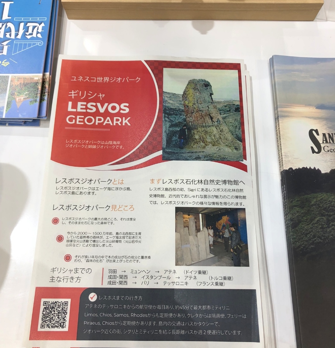 Καθόλη τη διάρκεια της έκθεσης, οι χιλιάδες επισκέπτες της είχαν την ευκαιρία να ενημερωθούν για το Γεωπάρκο Λέσβου και το Απολιθωμένο Δάσος και τις δυνατότητες επίσκεψης στη Λέσβο από το προσωπικό του Γεωπάρκου Sai’in Kaigan. Παράλληλα, όλοι οι επισκέπτες είχαν την ευκαιρία να γνωρίσουν τη Λέσβο μέσα από το ενημερωτικό έντυπο που μετέφρασε στα Ιαπωνικά και εκτύπωσε ειδικά για την έκθεση το Γεωπάρκο Sai’in Kaigan της Ιαπωνίας.