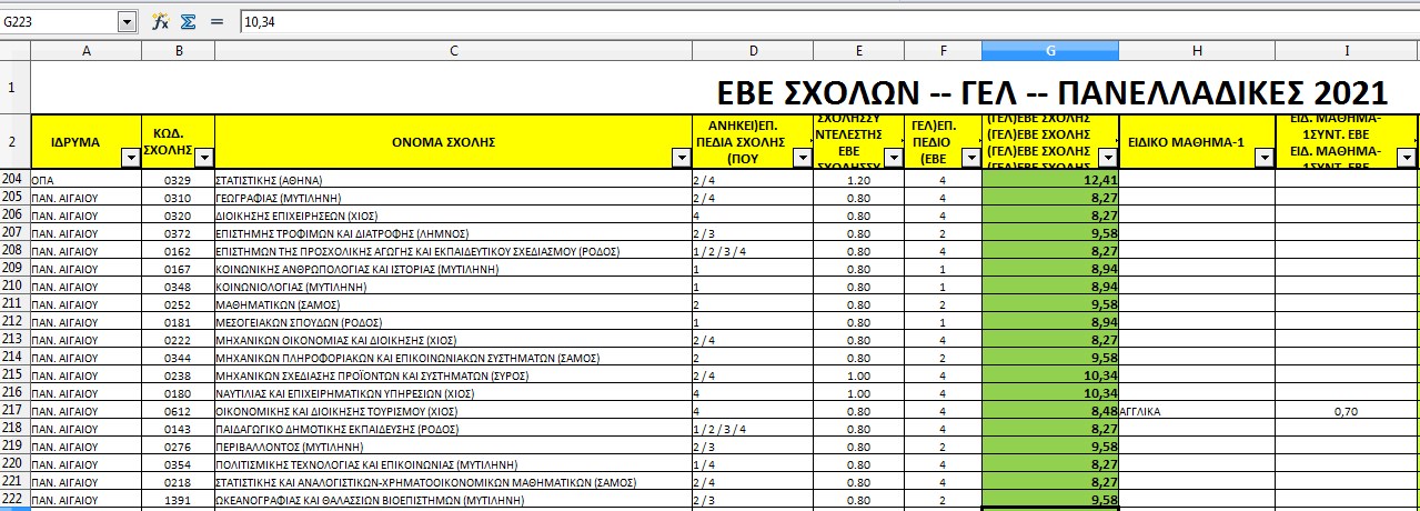 Στο Τμήμα Περιβάλλοντος είχαμε 71 επιτυχόντες με τον 1ο να συγκεντρώνει 11.150 μόρια, ενώ τα μόρια βάσης ήταν 4.300.
