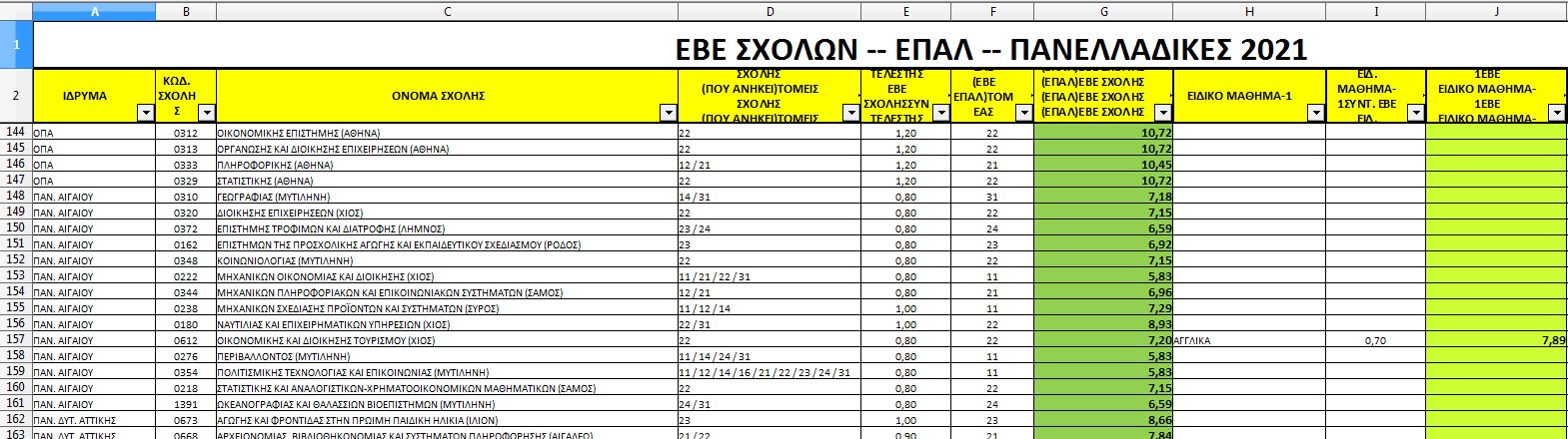 Στο Τμήμα Γεωγραφίας είχαμε 158 επιτυχόντες με τον 1ο να συγκεντρώνει 8.675 μόρια, ενώ τα μόρια βάσης ήταν 3.950.