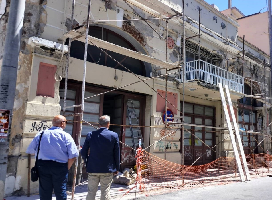 Στο κτίριο της παλιάς Πυροσβεστικής επί της οδού Αεροπόρου Γιαναρέλλη στη Μυτιλήνη, όπου την Τρίτη 18 Ιουνίου ξεκίνησαν οι εργασίες επισκευής της πρόσοψης, βρέθηκε ο Δήμαρχος Μυτιλήνης Παναγιώτης Χριστόφας συνοδευόμενος από τον Προϊστάμενο της Διεύθυνσης Τεχνικών Υπηρεσιών του Δήμου Ανδρέα Παπαχριστοφόρου.