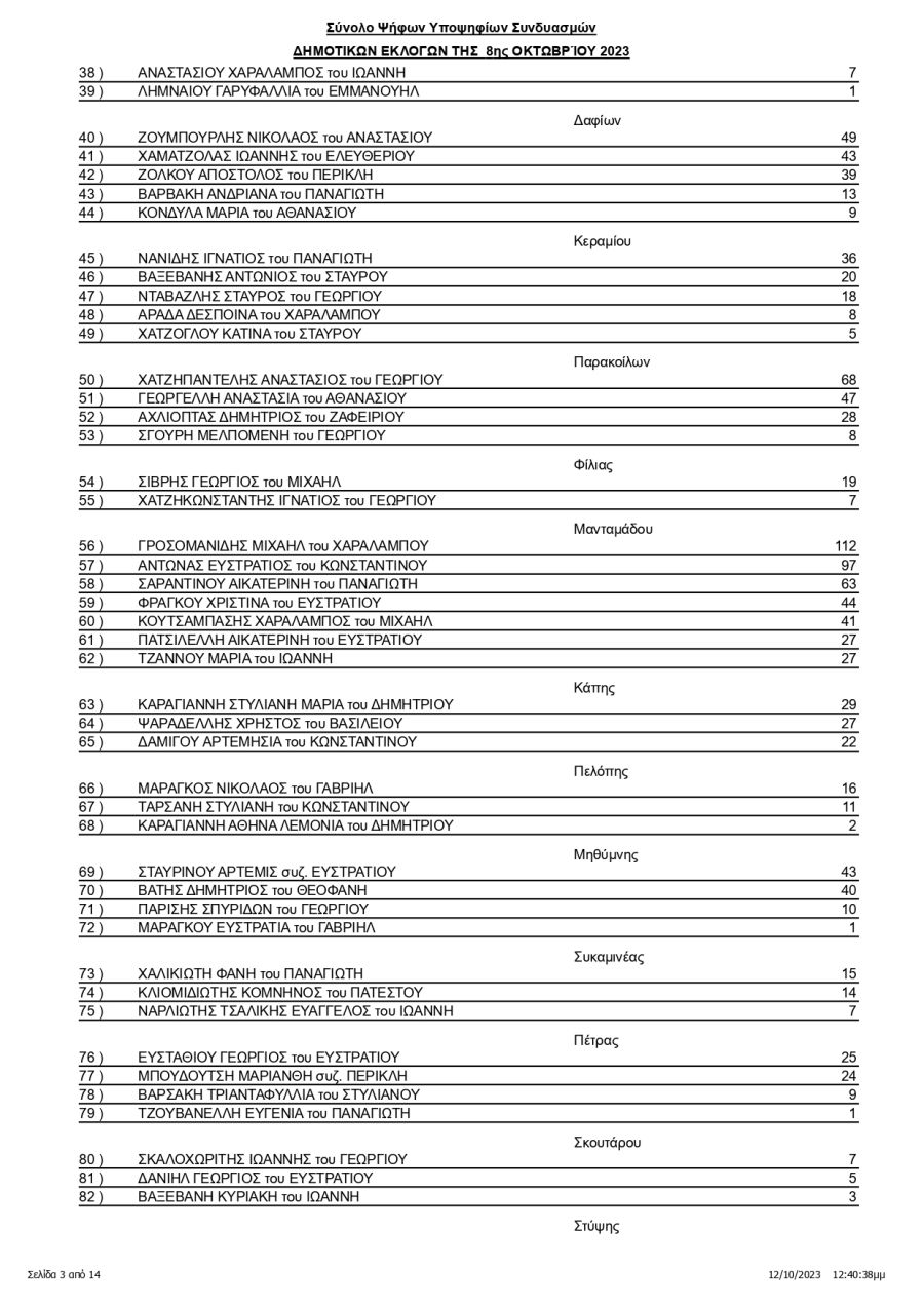 Ακολούθως παρουσιάζονται τα αποτελέσματα της σταυροδοσίας ανά κοινότητα στον Δήμο Δυτικής Λέσβου, όπως καταγράφηκαν στο Πρωτοδικείο Μυτιλήνης