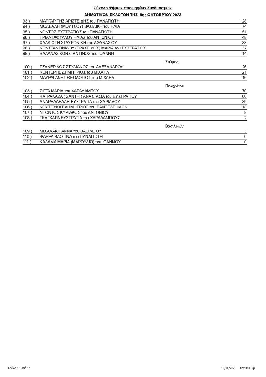 ΑΠΟΤΕΛΕΣΜΑΤΑ ΠΡΩΤΟΔΙΚΕΙΟΥ ΓΙΑ ΤΗΝ ΣΤΑΥΡΟΔΟΣΙΑ ΣΤΟΝ ΔΗΜΟ ΔΥΤΙΚΗΣ ΛΕΣΒΟΥ