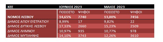 Τα αποτελέσματα του ΚΚΕ ανά Δήμο στον Νομό Λέσβου