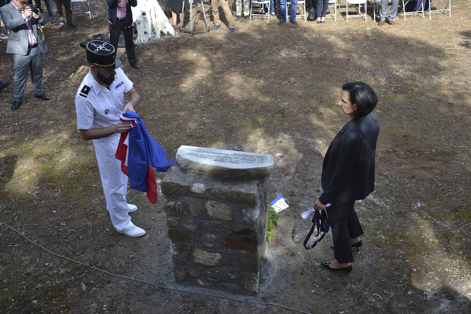 Μετά την κατάθεση στεφάνων (ανάμεσα τους και ο εκπρόσωπος των παρόντων Σενεγαλέζων αιτούντων άσυλο) ο βοηθός Ακόλουθος Άμυνας της γαλλικής πρεσβείας στην Αθήνα Ροντόλφ Τζοσερέ με την επίτιμη πρόξενο της Γαλλίας σε Λέσβο και Λήμνο Σοφία Μπαρουτσάκη Τσιριγώτη έκαναν τα αποκαλυπτήρια μιας σύγχρονης επιγραφής που αναφέρει: «Πρεσβεία της Γαλλίας στην Αθήνα. Τιμή στους άντρες που έδωσαν τη ζωή τους για τη Γαλλία».