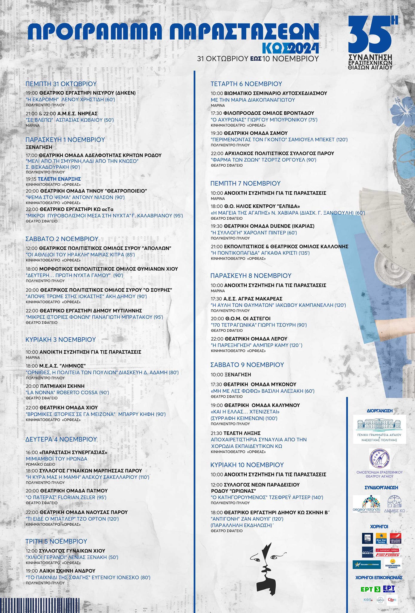 Σε αυτή την κατεύθυνση, η Γενική Γραμματεία Αιγαίου και Νησιωτικής Πολιτικής, διοργανώνει με την Ομοσπονδία Ερασιτεχνικού Θεάτρου Αιγαίου για 35η χρονιά την “Συνάντηση Ερασιτεχνικών Θιάσων Αιγαίου”, με συνδιοργανωτές για το 2024, την Περιφέρεια Νοτίου Αιγαίου και τον Δήμο Κω.