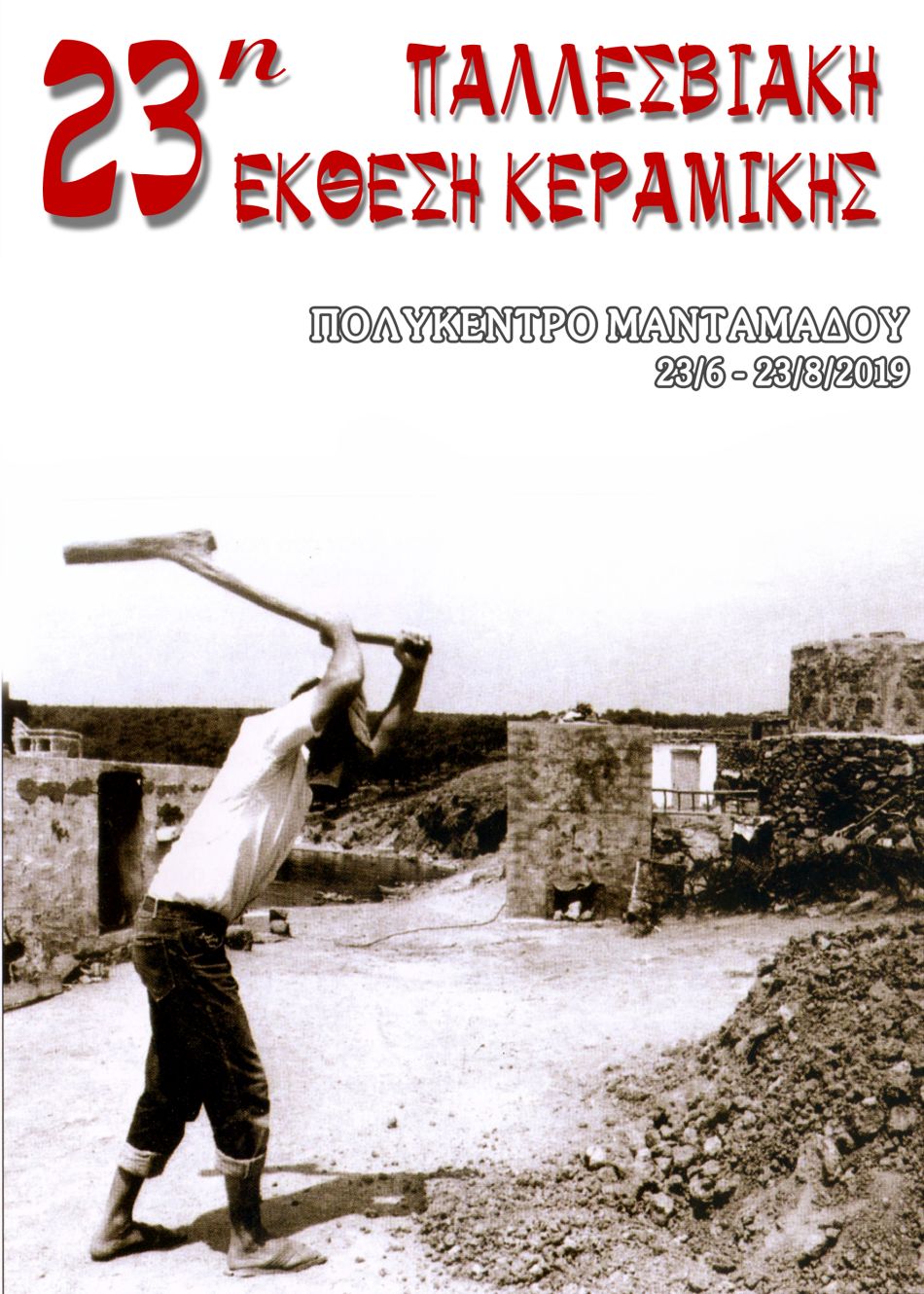 Από το Δήμο Λέσβου, γίνεται γνωστό ότι στις 23 Ιουλίου και ώρα 21:00 μ.μ στο Πολύκεντρο Μανταμάδου, θα γίνουν τα εγκαίνια της 23ης Παλλεσβιακής Έκθεσης Κεραμικής, που οργανώνουν η Δημοτική Κοινότητα Μανταμάδου και το ΝΠΔΔ Πολιτισμού - Τουρισμού Δήμου Λέσβου.